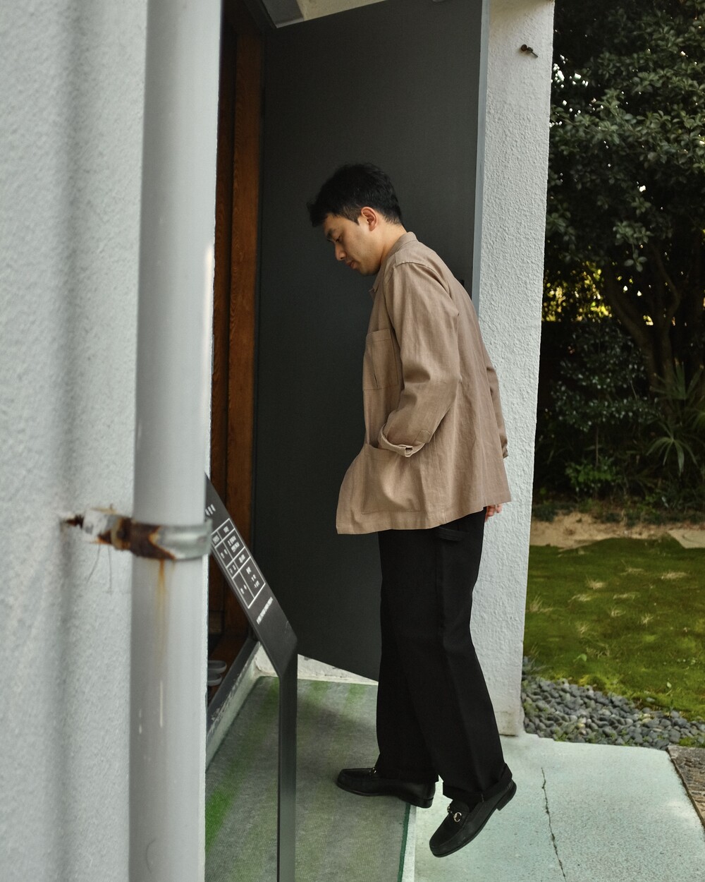 셔츠를 베이스로 재킷의 디자인적 요소들을 접목시켜 제작한 헤비 린넨 오버셔츠(Heavy Linen Overshirt)입니다.