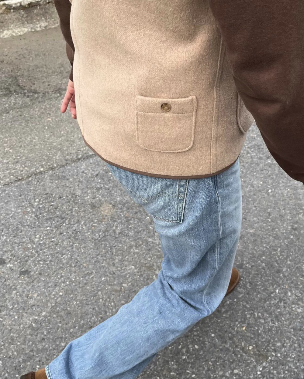 전체적으로 여유 있는 실루엣과 상대적으로 짧은 기장감, 그리고 소재에 중점을 두어 제작되었습니다.