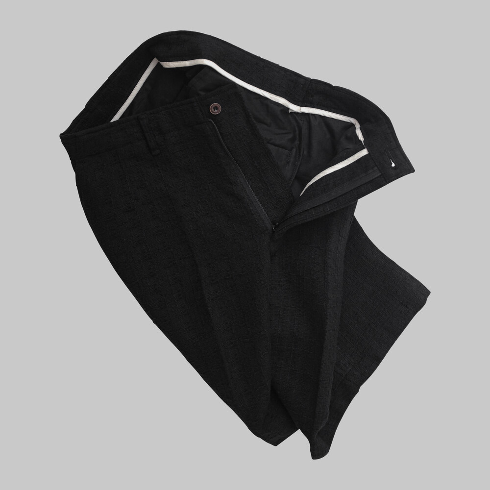 이번 쇼츠를 기획 중에 발견한 이 소재는 트위드로 짜여진 코튼 린넨 소재로 한 여름에도 무리 없이 착용이 가능하며 린넨의 심한 구김 현상이 꺼려 지시는 분들께도 반가운 소재이지 않을까 싶습니다.