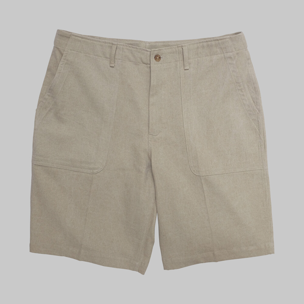 Beige Cotton Linen Fatigue Shorts