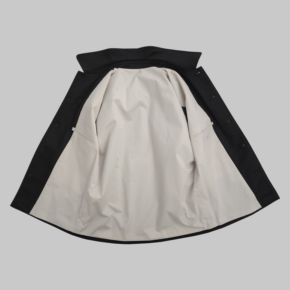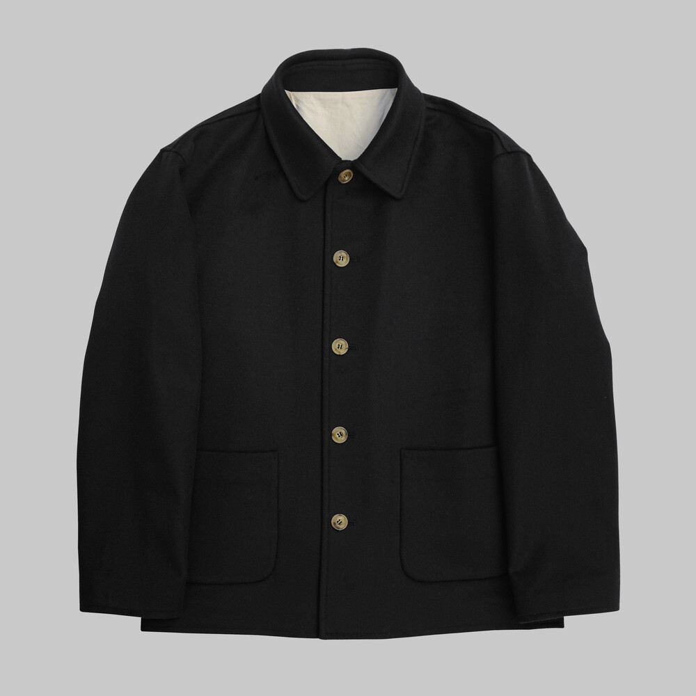 울과 캐시미어의 부드러운 원단에 어울리는 깔끔한 디자인과 은은한 광택감이 특징인 자켓입니다.