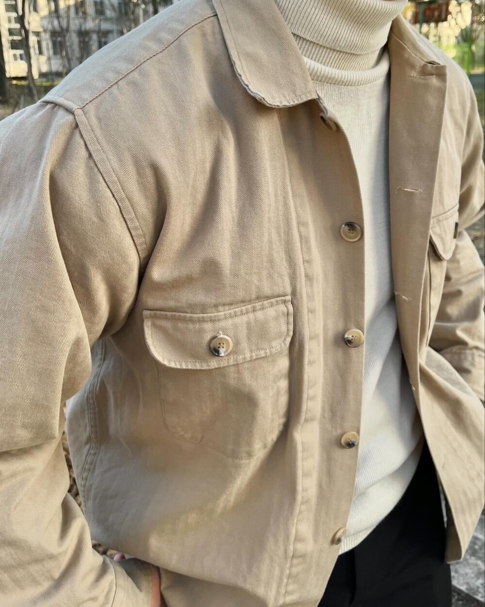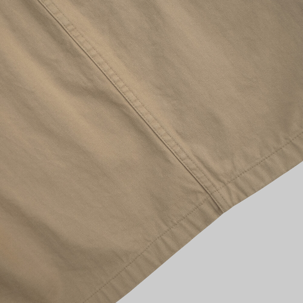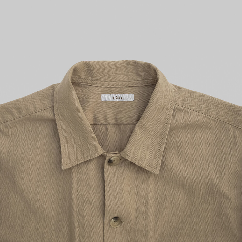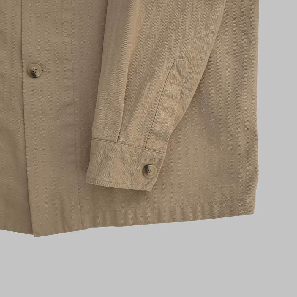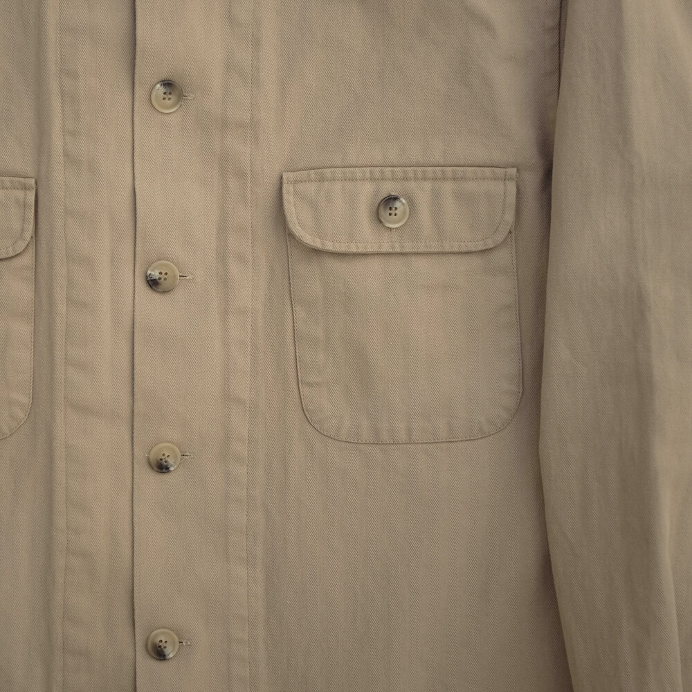 이번 아이템은 높은 고밀도의 헤링본 트윌 코튼 소재가 적용되었으며 뛰어난 내구성과 입으면서 자연스럽게 생기는 빈티지한 원단의 텍스처와 퍼커링 등 경년변화가 매력적인 셔츠입니다.