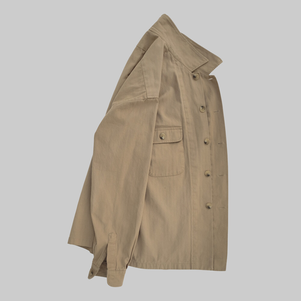 전체적으로 여유 있는 실루엣과 보다 짧은 기장감으로 착용 시 경쾌한 느낌을 살려주며 셔츠라 불리지만 지금같이 아침저녁으로 쌀쌀한 날씨에는 니트 위에 가볍게 걸쳐주시거나 가벼운 아우터로 활용해 주셔도 좋습니다.