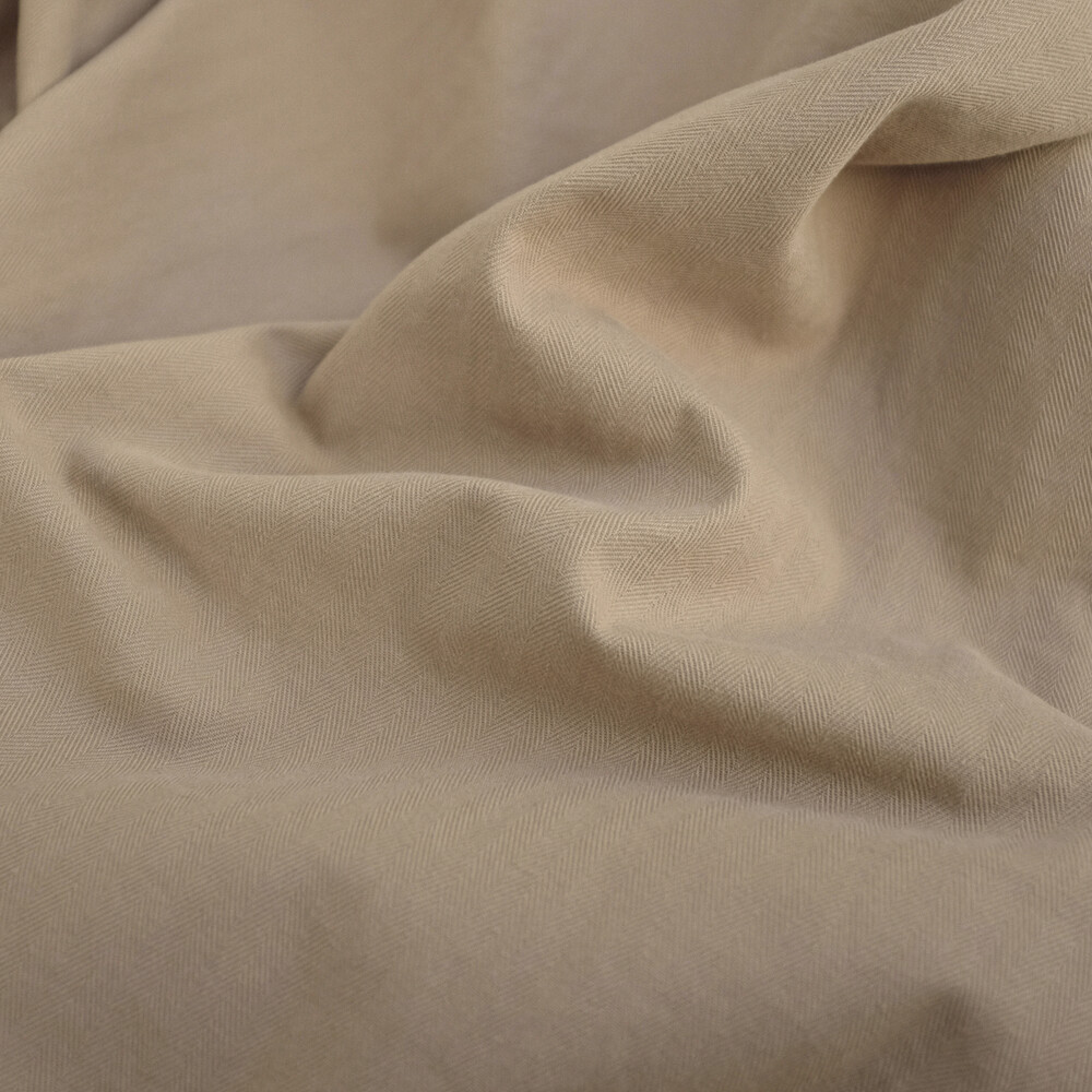 소재 특유의 빈티지한 텍스처와 부드러운 터치감을 끌어내기 위해 두 번의 가공을 통해 먼저 수축률을 최대한으로 잡아내고 옷이 완성되기 전, 더욱 부드럽게 하기 위해 또 한 번의 가공을 거치게 됩니다.
