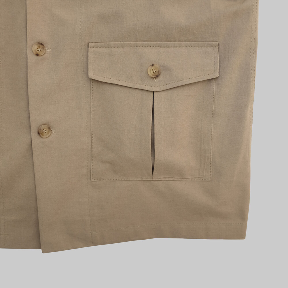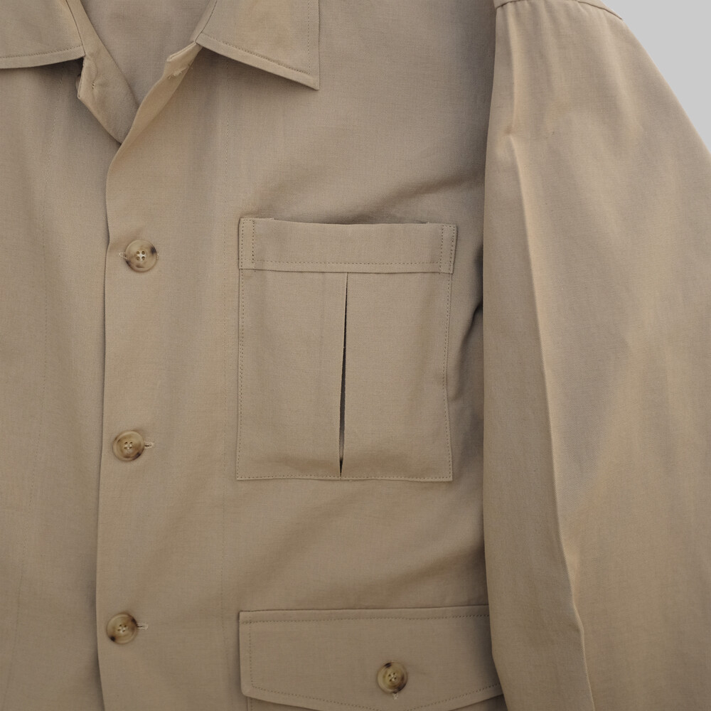 Beige Twill Cotton Linen Shirt Jacket