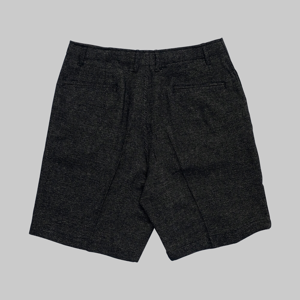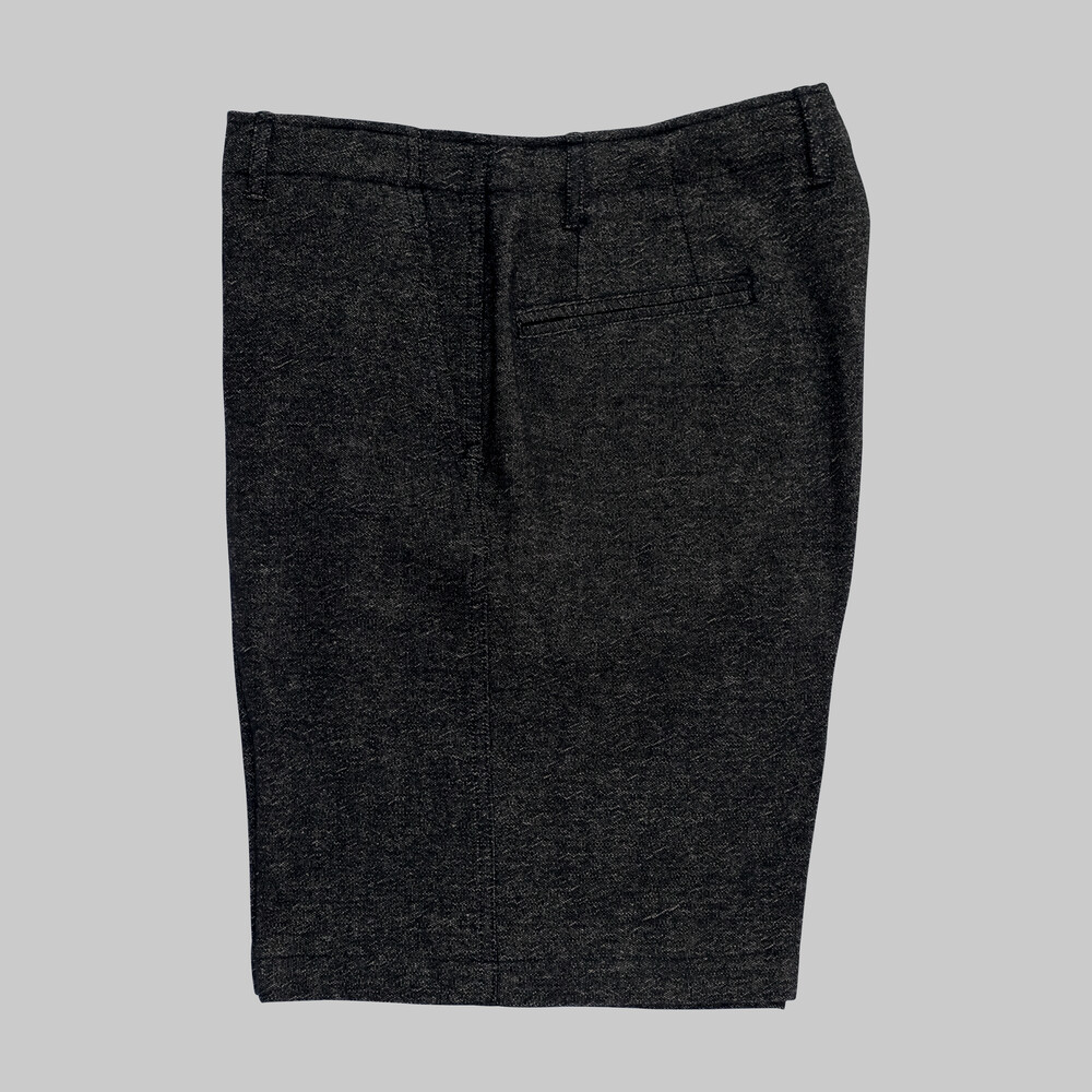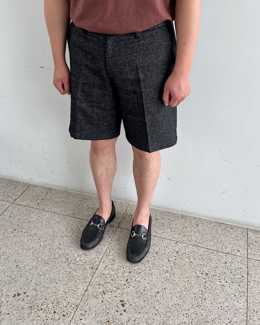 원단 사이사이에 은은하게 비치는 홈스펀 특유의 텍스처가 돋보이는 울 린넨 혼방 원단으로 제작된 쇼츠입니다.