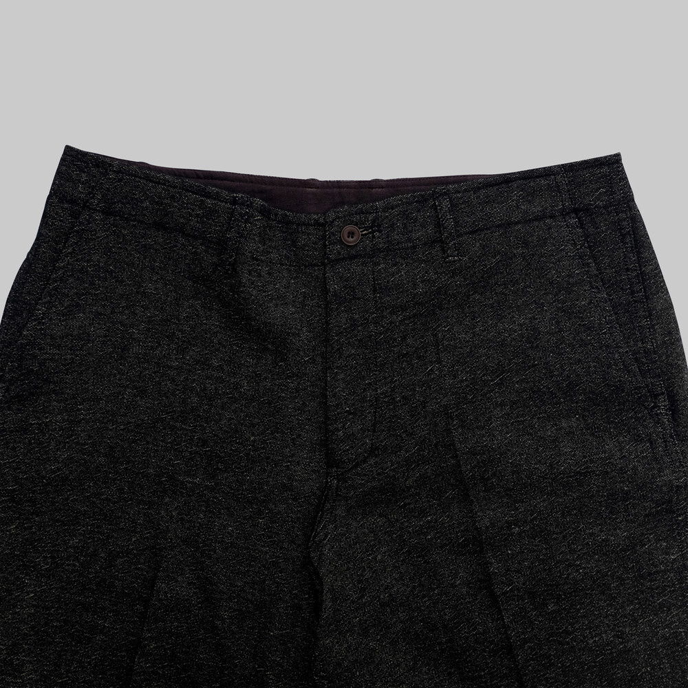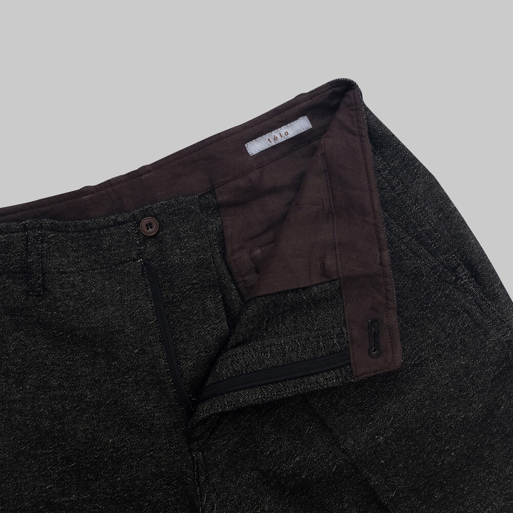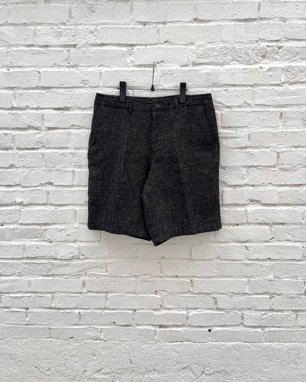 원단 사이사이에 은은하게 비치는 홈스펀 특유의 텍스처가 돋보이는 울 린넨 혼방 원단으로 제작된 쇼츠입니다.