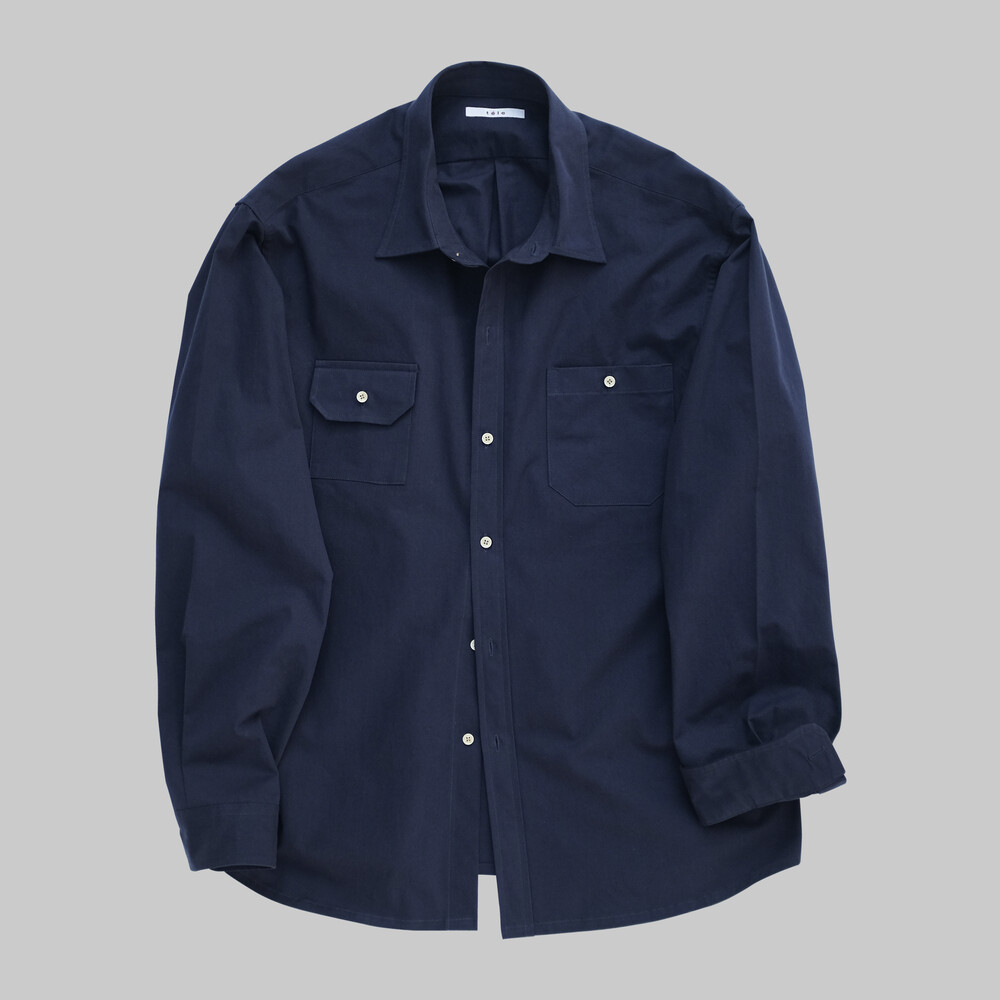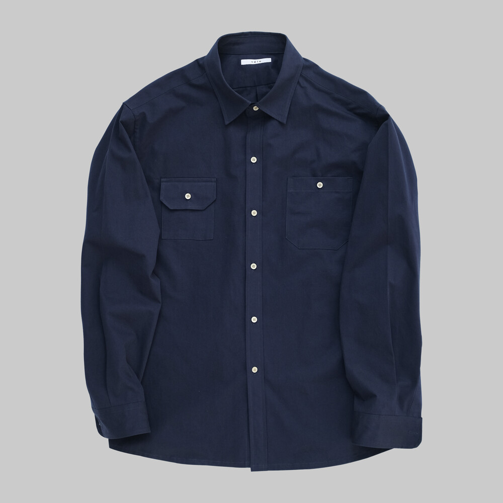 Navy High Density Twill Cotton Two Pocket Shirt