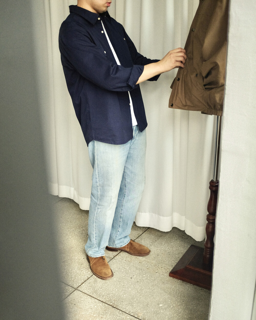 Navy, Khaki Beige 두 가지 색상으로 준비해 보았습니다. 아침저녁으로 쌀쌀한 날씨에 아우터 개념으로 편하게 걸쳐주시거나 니트 안 이너로 활용해 주셔도 좋습니다.