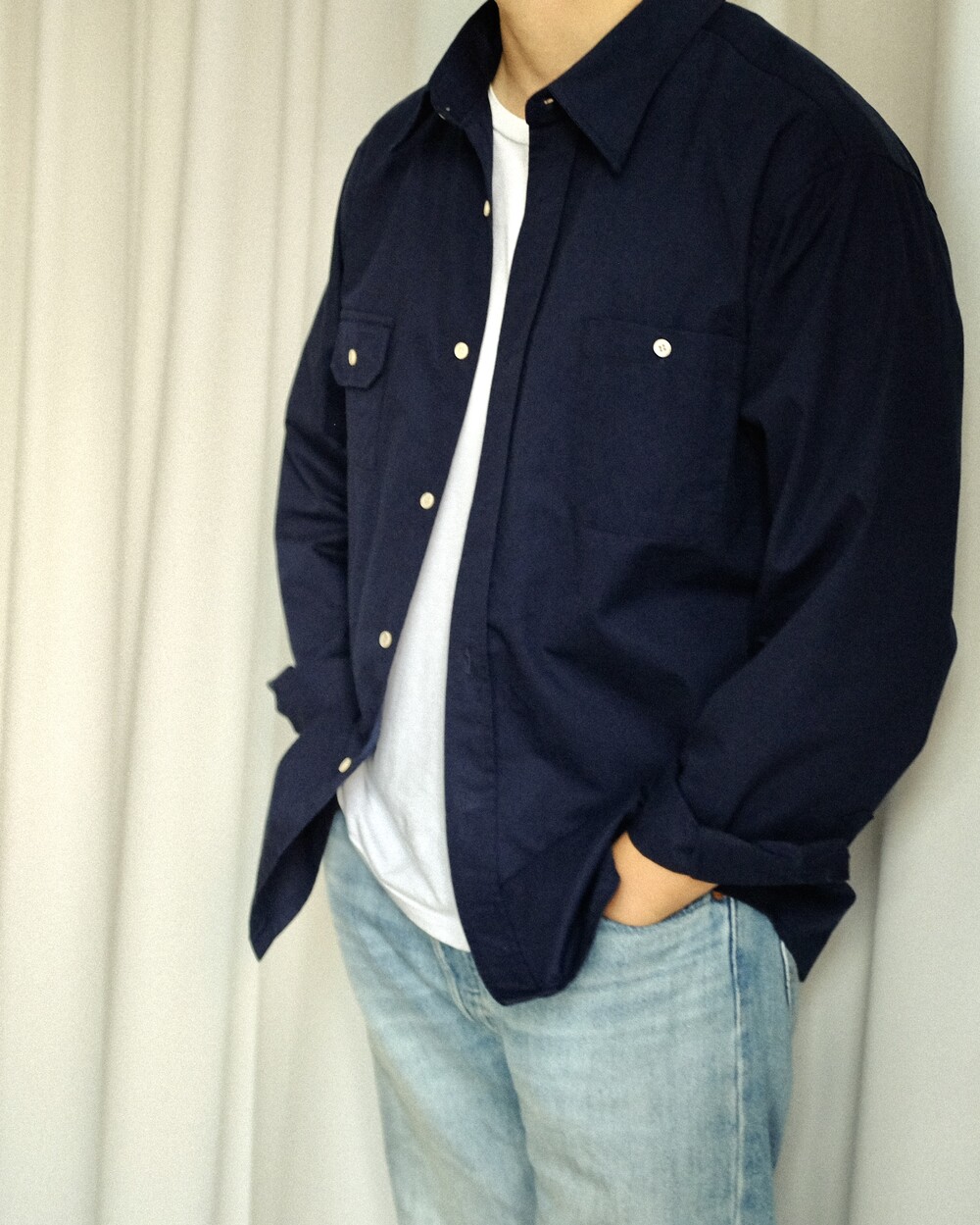 2024 가을, 겨울 시즌 처음 소개드릴 아이템은 능직(Twill)으로 짜인 고밀도 코튼 소재가 적용된 투 포켓 셔츠입니다. 높은 내구성 그리고 입을수록 생겨나는 원단의 빈티지한 텍스처와 퍼커링 등 자연스러운 경년변화가 기대되는 아이템 중 하나입니다.