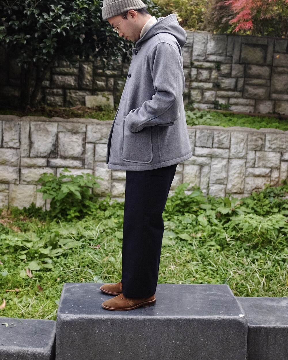 짙은 네이비 색상과 과하지 않는 깔끔한 디자인으로 어느 코디에나 두루두루 오래 입을 수 있는 높은 활용도를 가지고 있으며 4계절 모두 피팅이 가능한 두께감으로 봐주시면 될 것 같습니다.