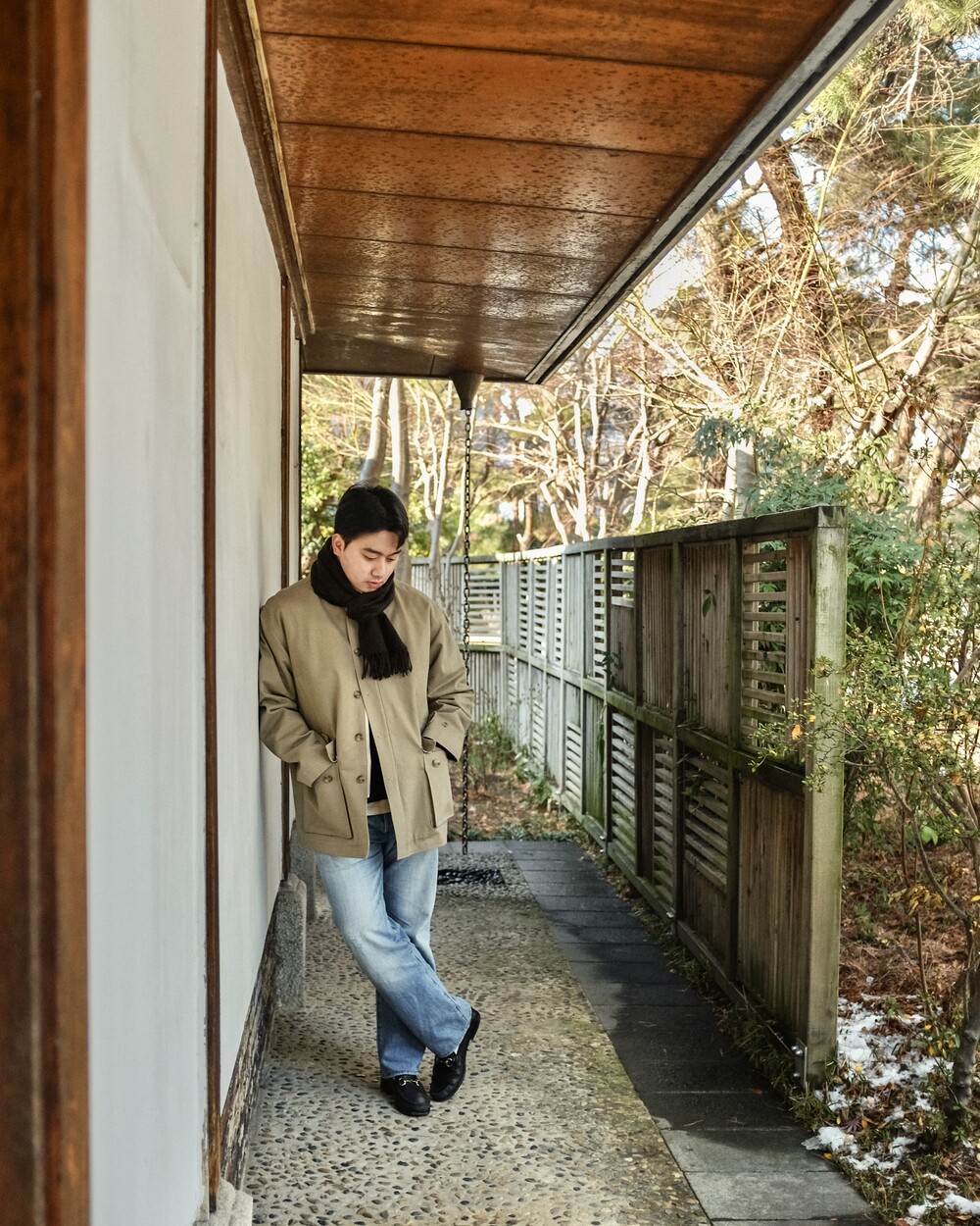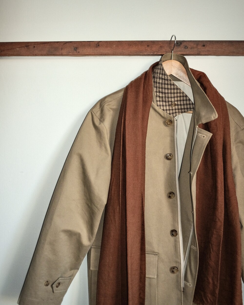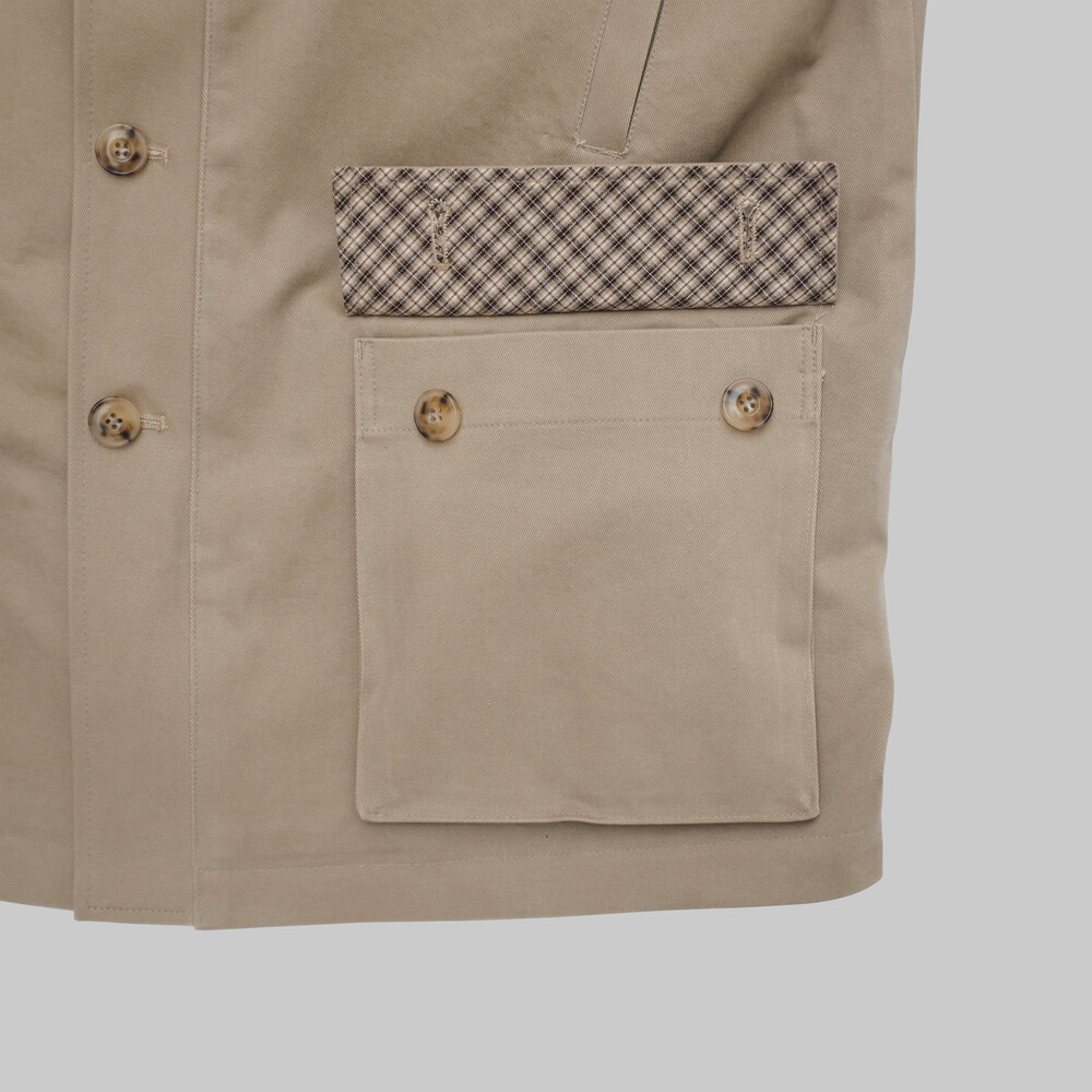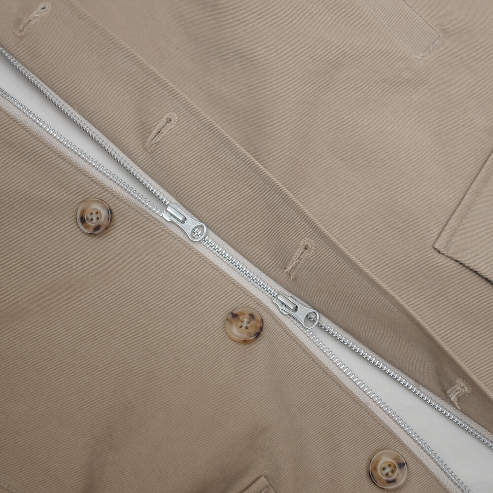 칼라 뒤쪽으로는 체크 패턴이 배색되어 칼라를 세웠을 때 또 다른 분위기의 연출이 가능하며 가장 베이직한 컬러감으로 누구나 부담 없이 입을 수 있는 높은 활용도를 가지고 있습니다.