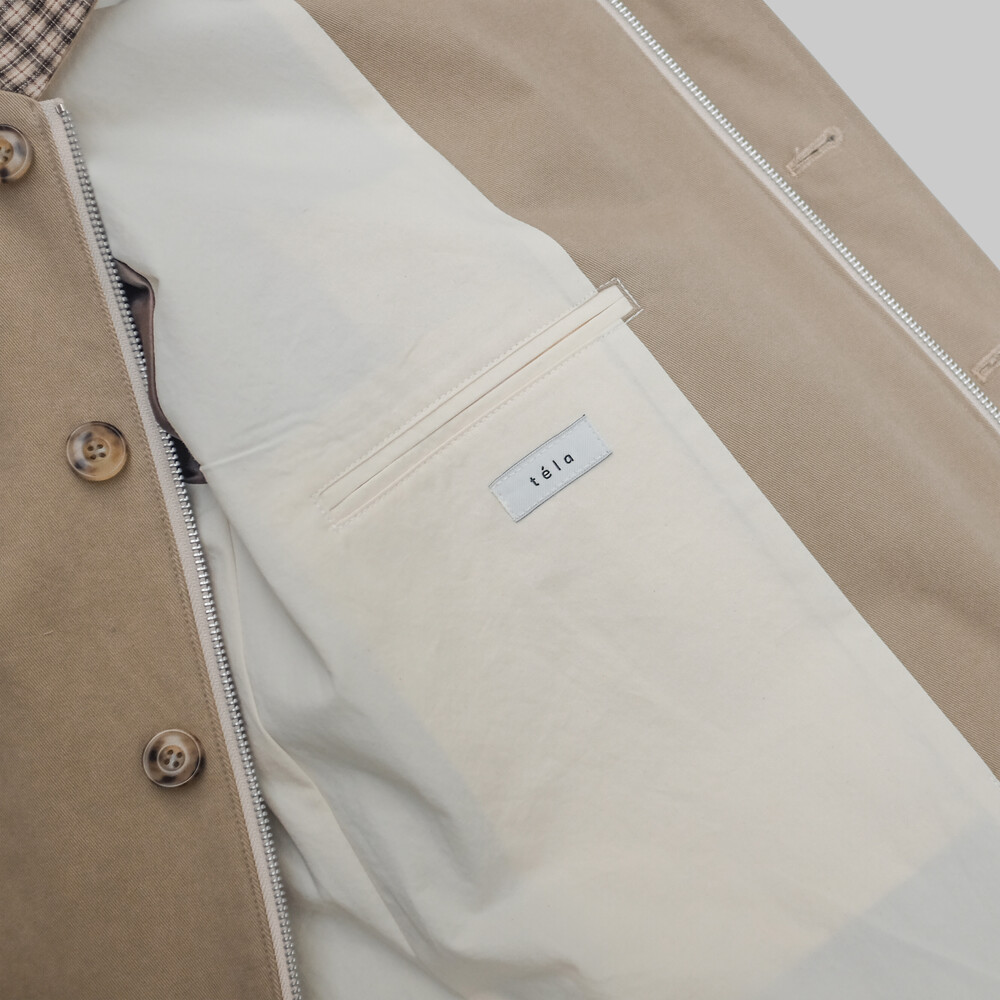 기본에 충실한 이번 아이템 역시 뗄라의 시그니처 디테일인 100% 코튼 소재의 안감을 사용하여 탄탄한 내구성과 내추럴한 분위기를 더하였으며 소매는 부드러운 착용감을 위해 폴리 소재를 따로 적용시켰습니다.