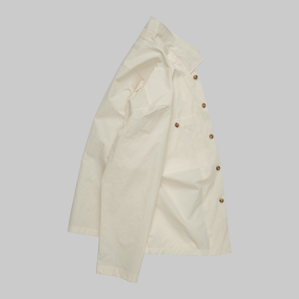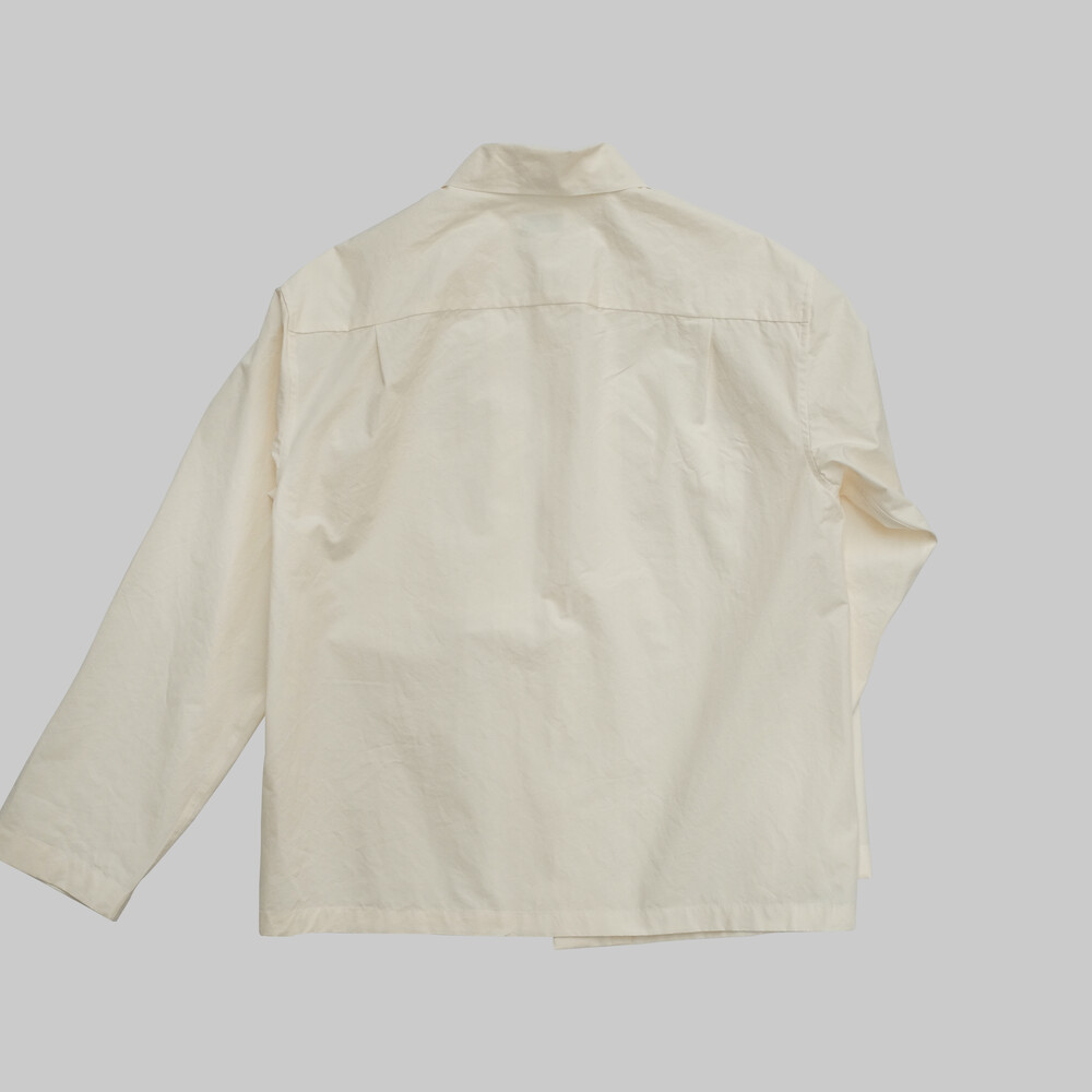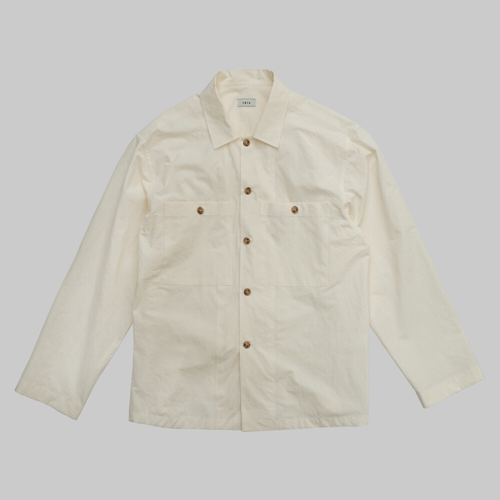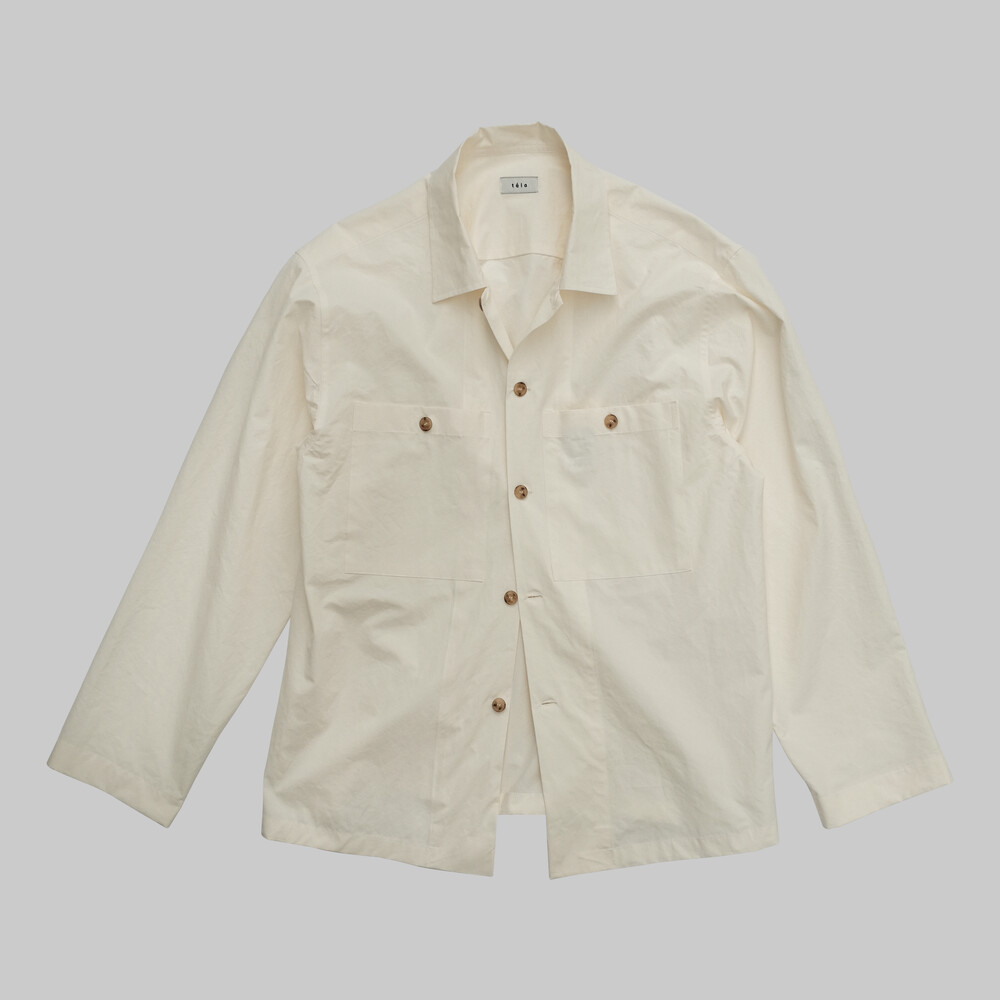 바스락거리는 시원한 촉감의 평직 면 원단을 사용하여 제작된 오버셔츠입니다.