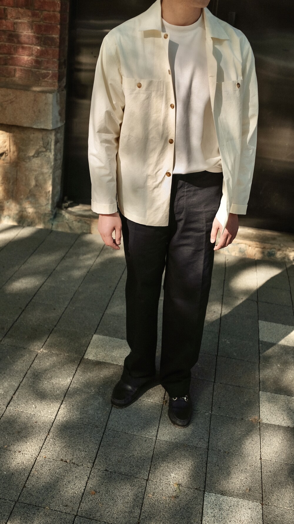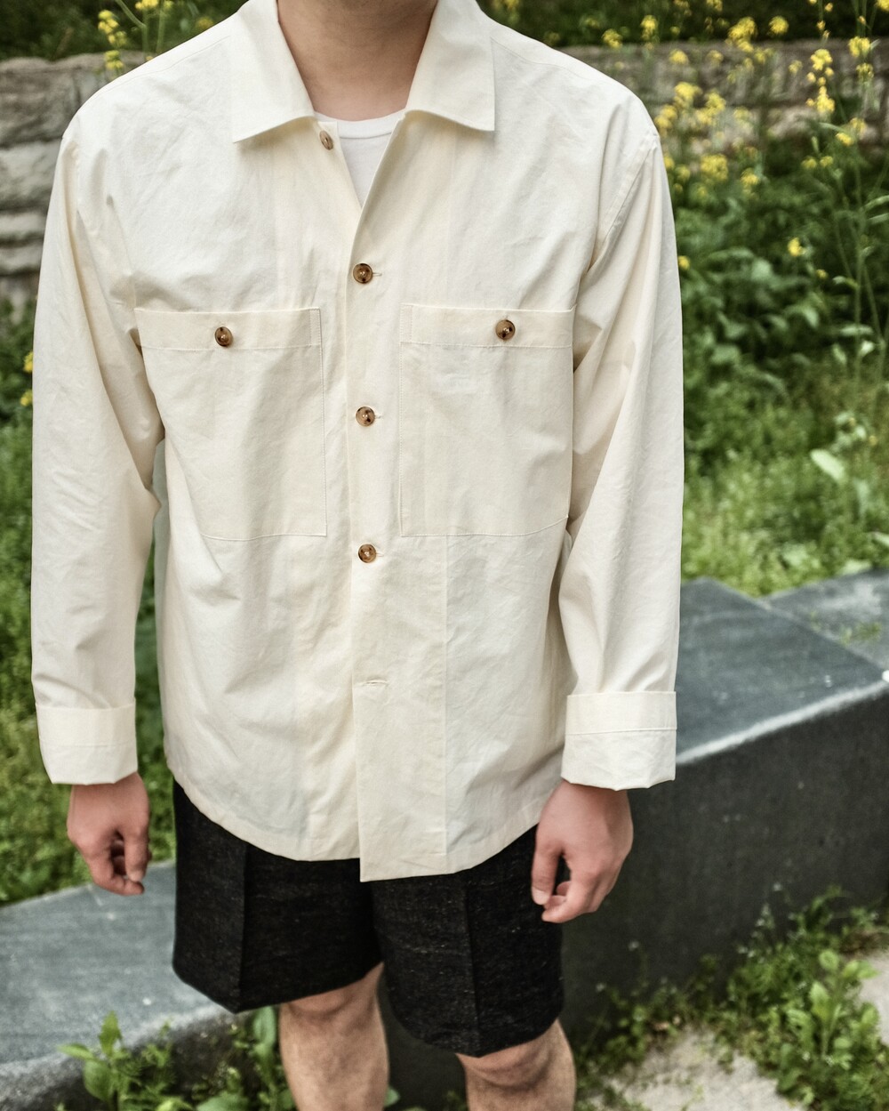 길지 않은 총장과 상대적으로 소매길이는 길게 연출하였으며 팬츠 밖으로 꺼내 입어 단품으로 착용하시거나 티셔츠 위 가벼운 아우터로 활용해 주시면 좋습니다.