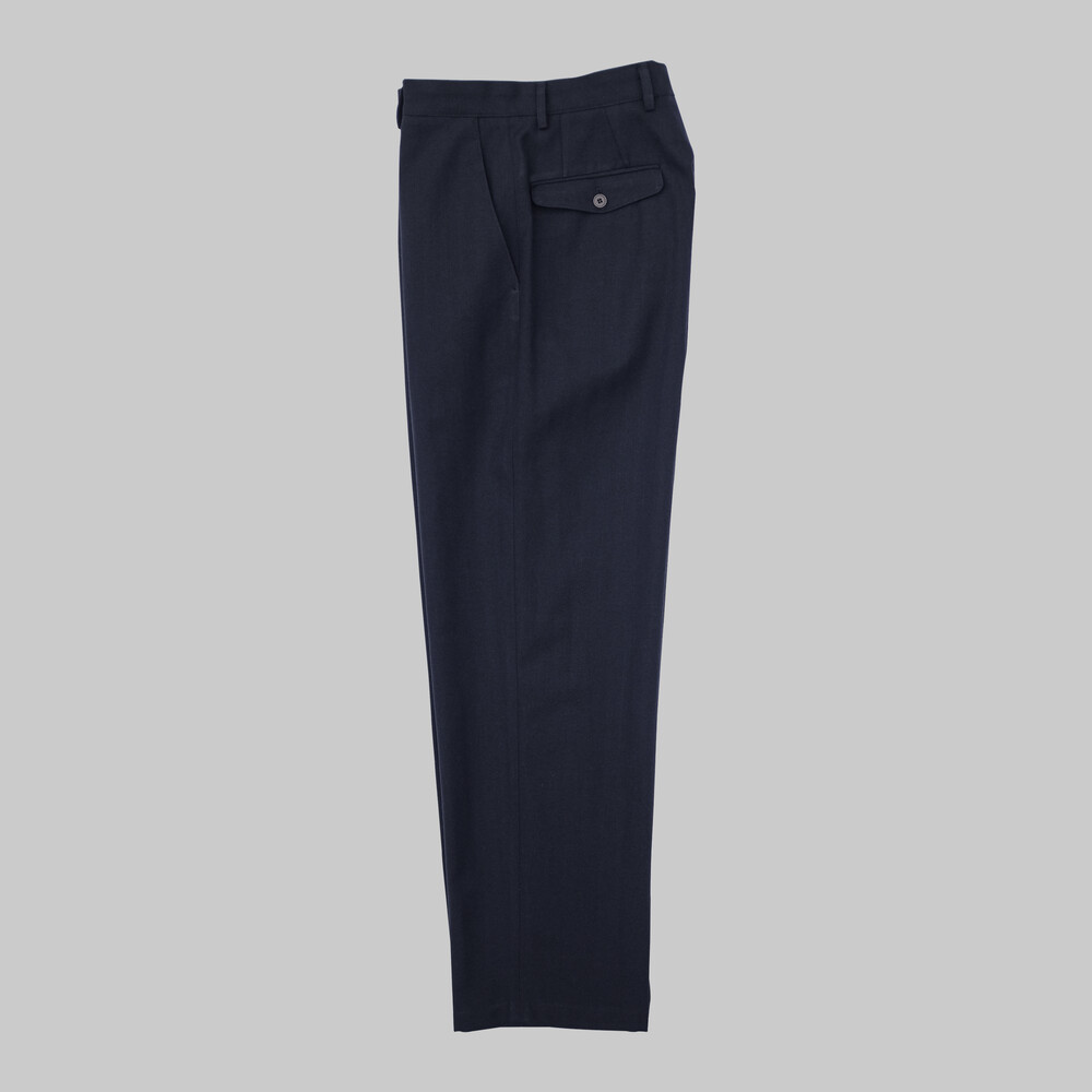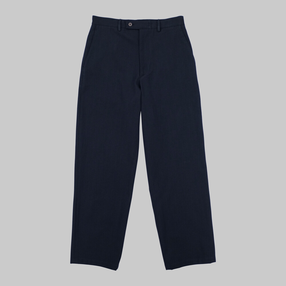 울55%, 코튼45%의 평소 보기 드문 혼용률 조합으로 울 소재 특유의 광택감은 최대한 덜어내어 좀 더 캐주얼한 분위기와 단정함을 동시에 느낄 수 있으며 표면에 은은하게 드러나는 헤링본 패턴이 특히 매력적인 제품입니다.