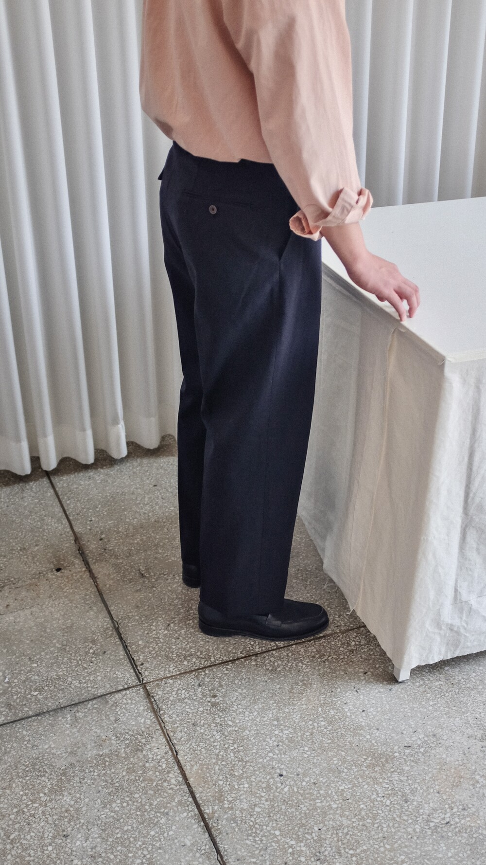 엉덩이부터 밑단으로 갈수록 자연스럽게 좁아지는 여유로운 실루엣의 테이퍼드 핏으로 피팅 시 편안한 착용감을 느낄 수 있으며 짙은 네이비 색상으로 어느 코디에나 두루두루 활용하기 좋습니다.