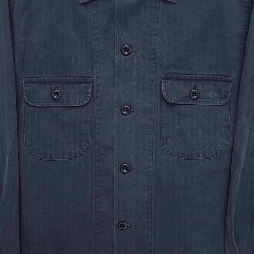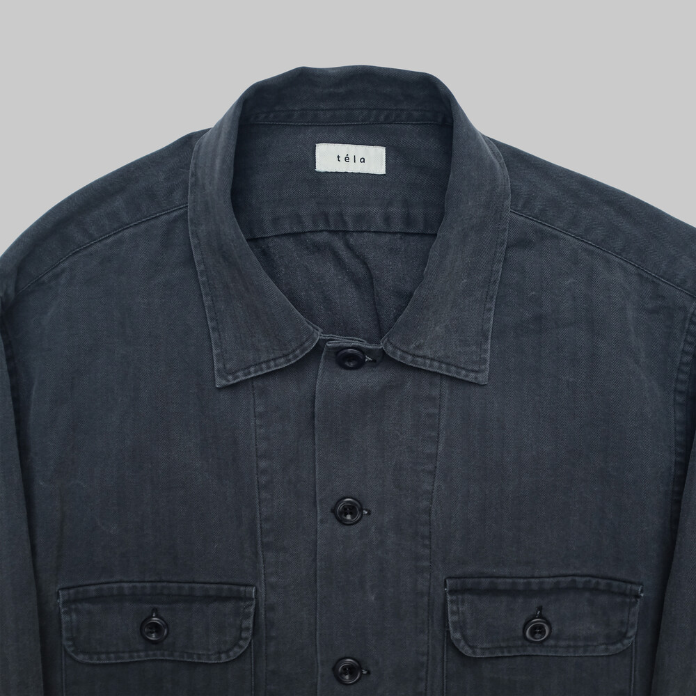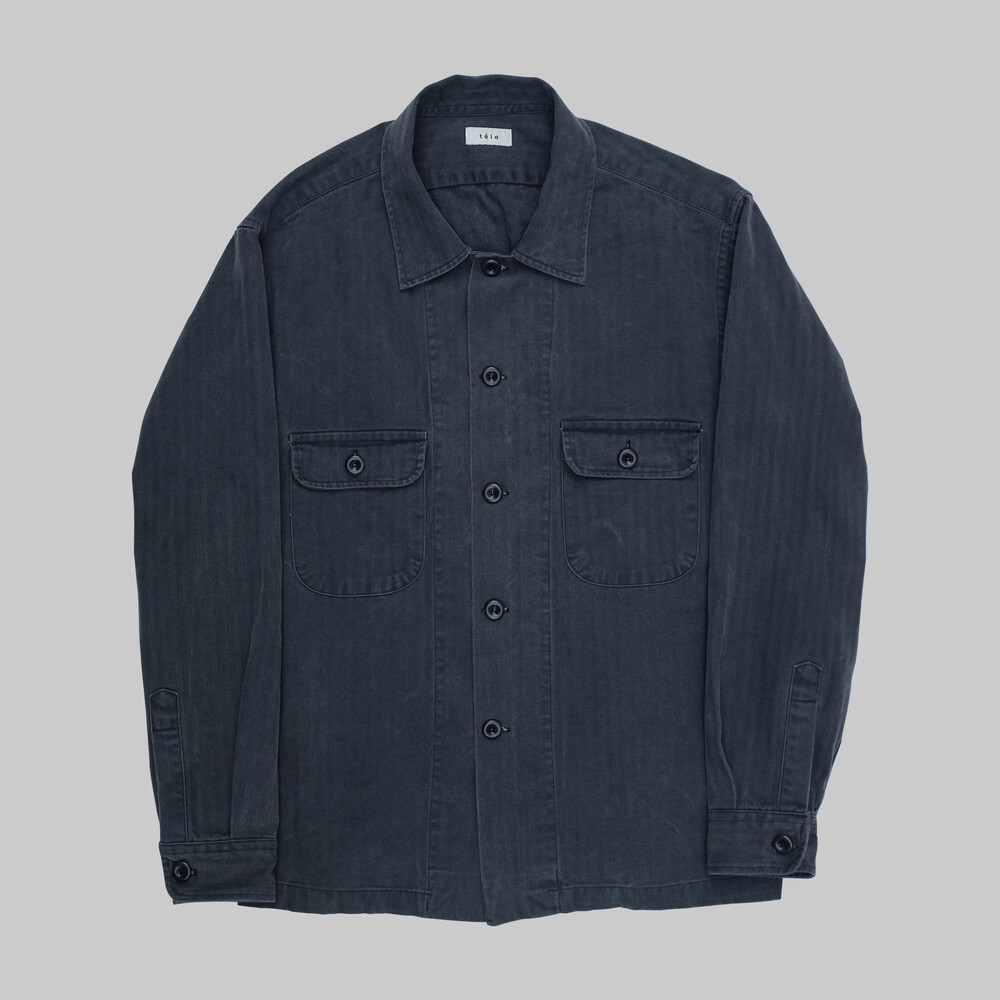고밀도의 헤링본 트윌 코튼 소재가 적용되었으며 제작 후 가공을 통한 자연스러운 페이딩과 퍼커링 등 빈티지함이 매력적인 유틸리티 셔츠입니다.