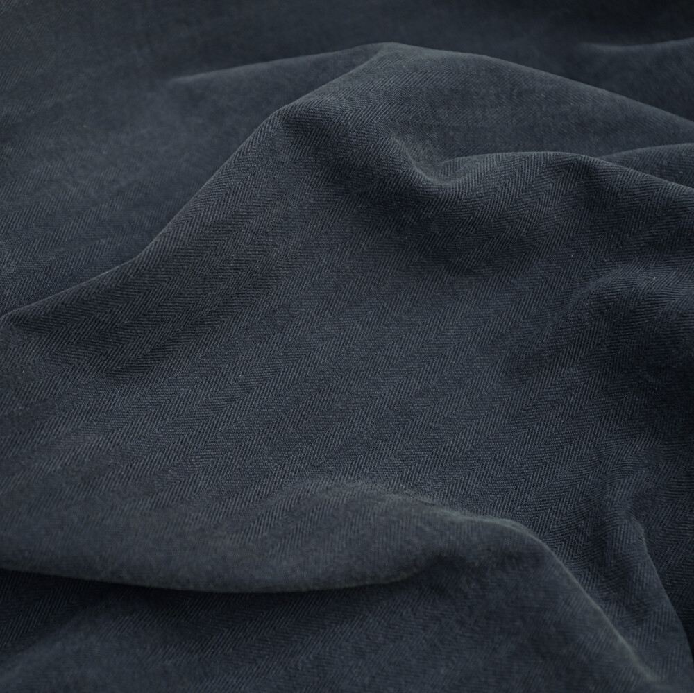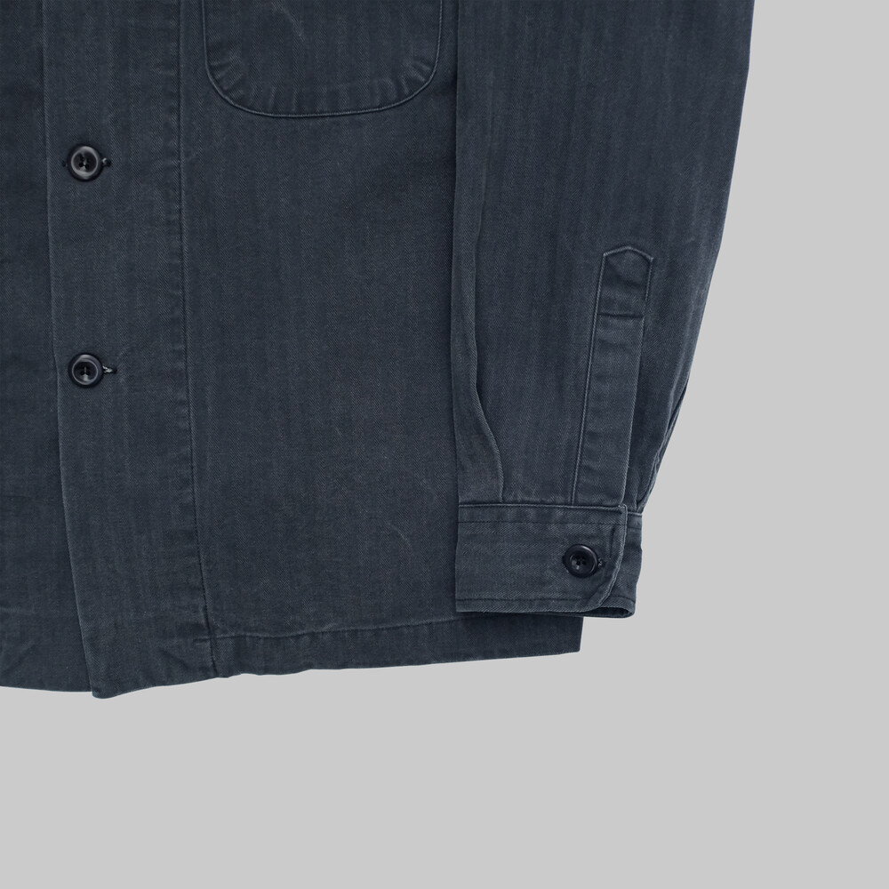 Washed Navy Herringbone Twill Cotton Utility Shirt