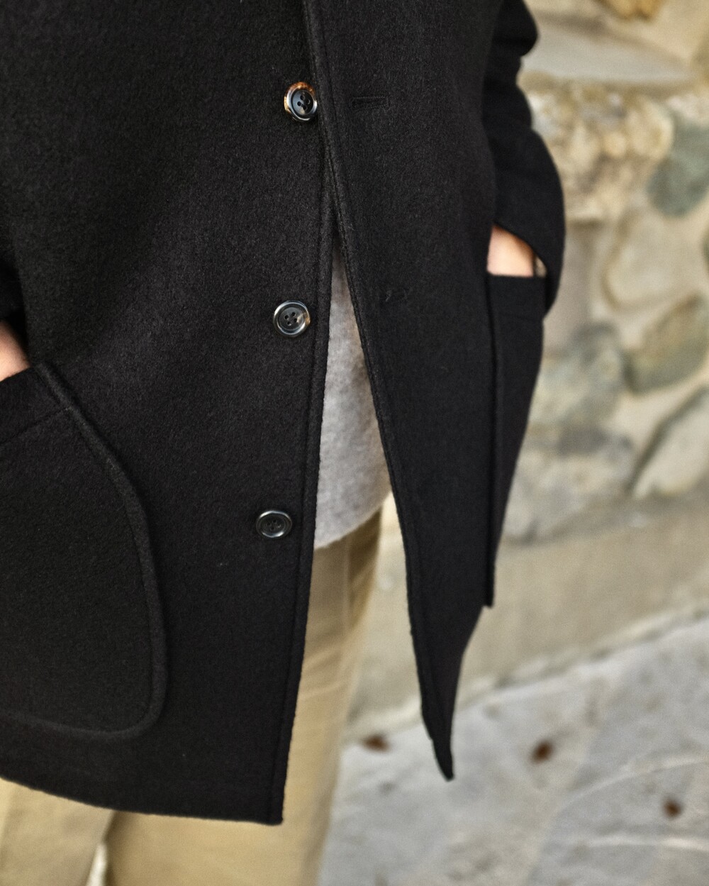 독특한 조직감의 부클 울 소재에 알파카 소재가 함유되어 두툼한 두께 대비 가벼우면서 보온성까지 갖춘 겨울철 아주 실용적인 자켓입니다.