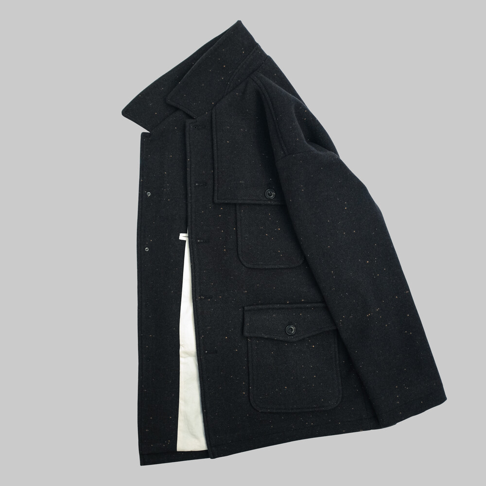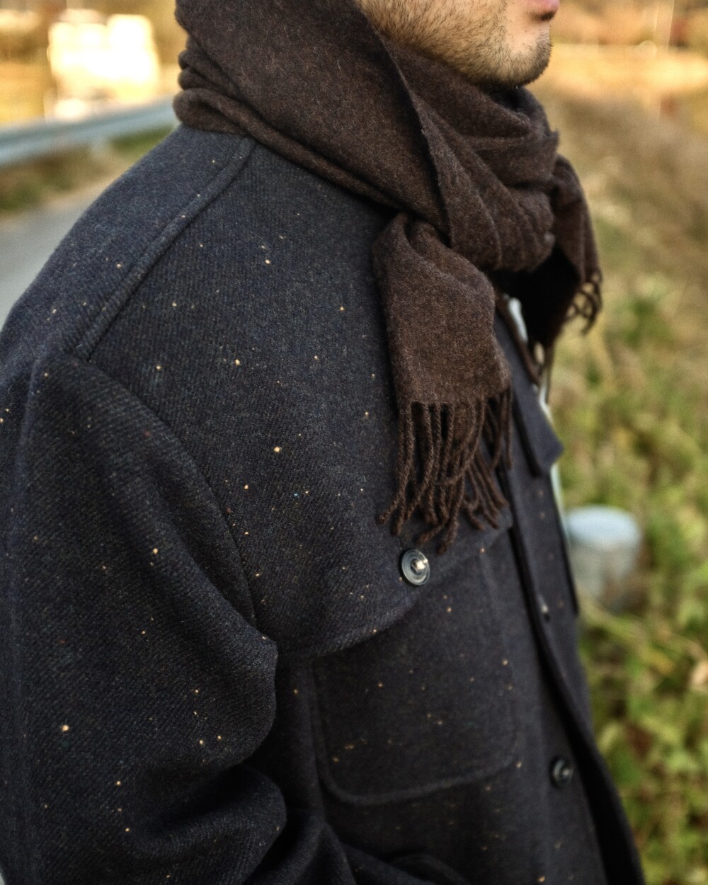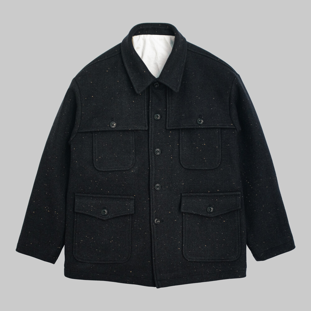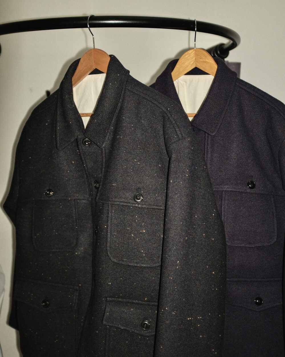 굵직하게 짜인 원단 사이사이에 은은하게 비치는 홈스펀 특유의 빈티지한 텍스처가 매력적인 자켓으로 주로 코트에 쓰이는 꽤 두툼한 소재를 사용하였습니다.