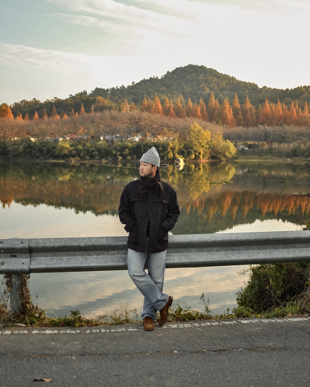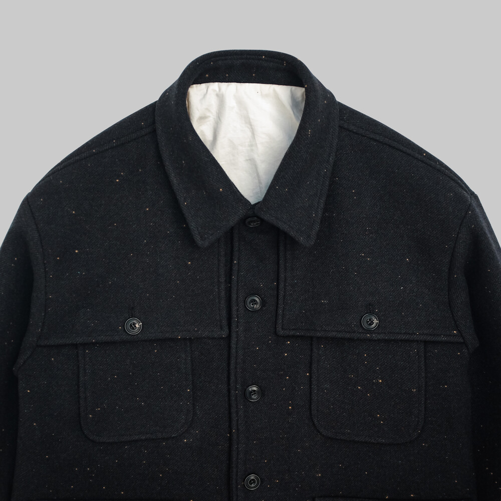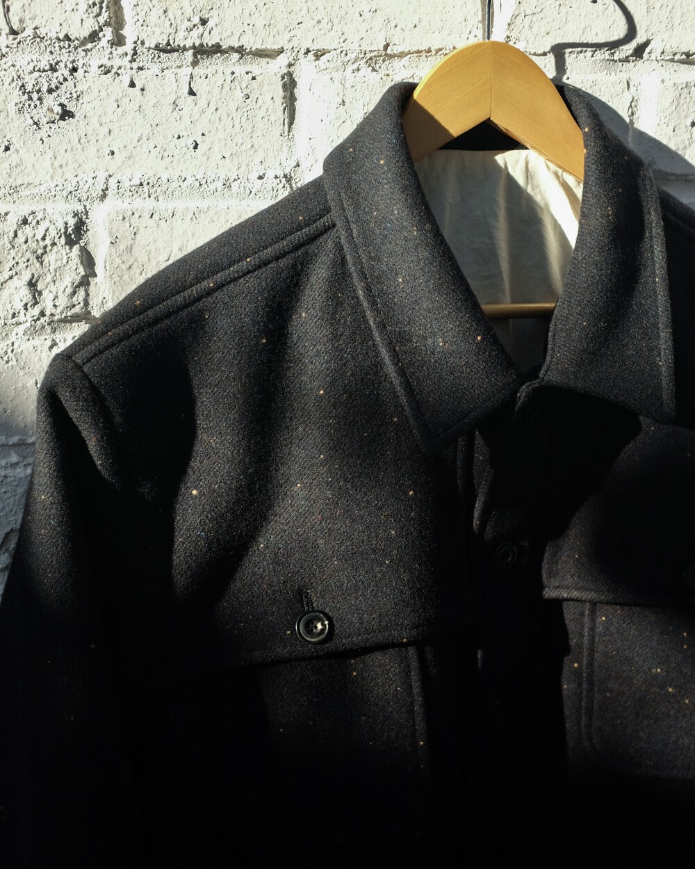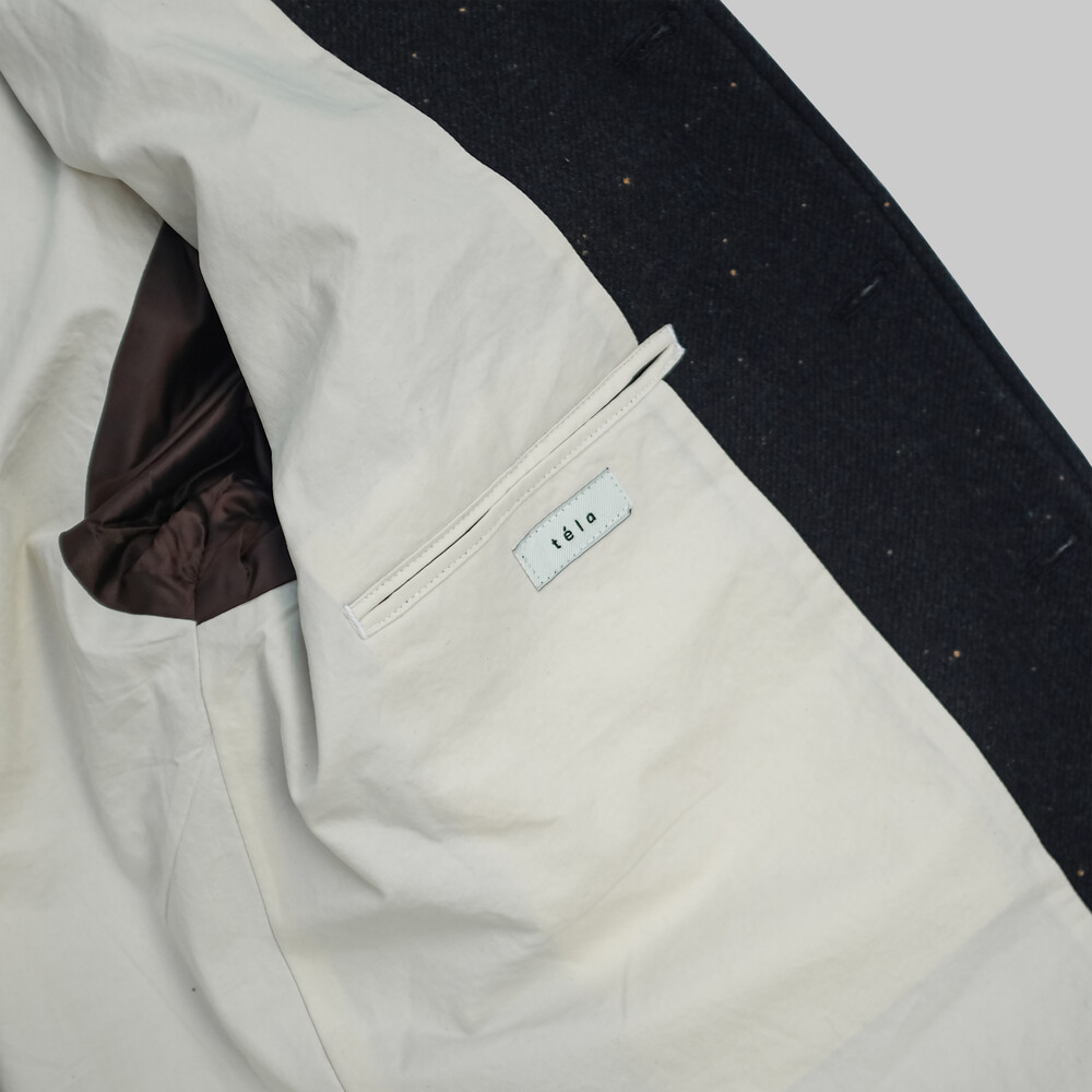 굵직하게 짜인 원단 사이사이에 은은하게 비치는 홈스펀 특유의 빈티지한 텍스처가 매력적인 자켓으로 주로 코트에 쓰이는 꽤 두툼한 소재를 사용하였습니다.