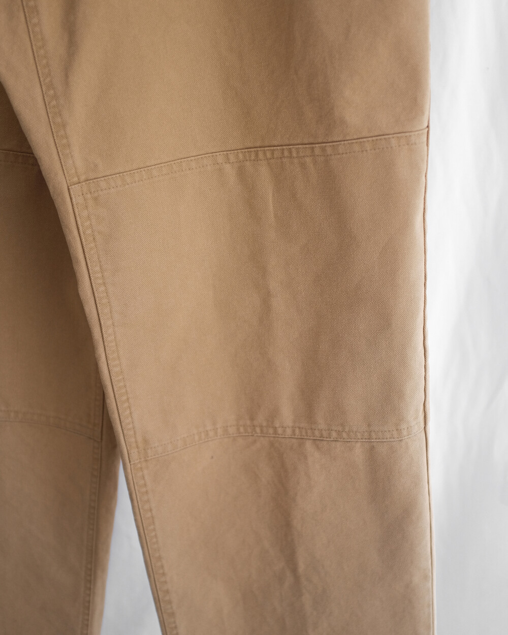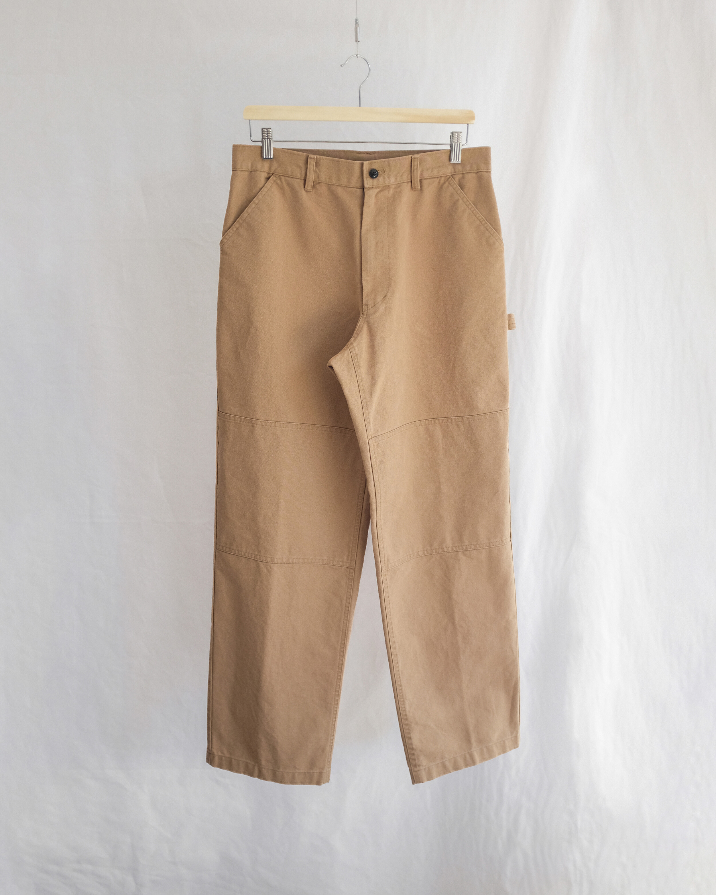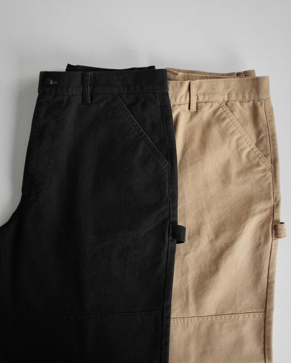 무릎 부위에는 원단이 한 겹 더 덧대어진 이중 원단(Double Knee) 처리로 보호력과 내구성을 높였으며 쉽게 찢어지지 않도록 평직으로 직조된 튼튼한 캔버스 소재를 사용하였습니다. 일상복으로도 누구나 부담 없이 착용할 수 있도록 불필요한 요소들은 생략하고 최소한의 디테일만 첨가하여 과하지 않은 디자인과 적당히 여유로운 실루엣으로 제작하였습니다. 완성 후 가공을 통한 소재 특유의 빈티지한 색감과 텍스처를 느끼실 수 있으며 경쾌한 베이지, 페이딩 된 블랙 두 가지 색상으로 만나보실 수 있습니다.