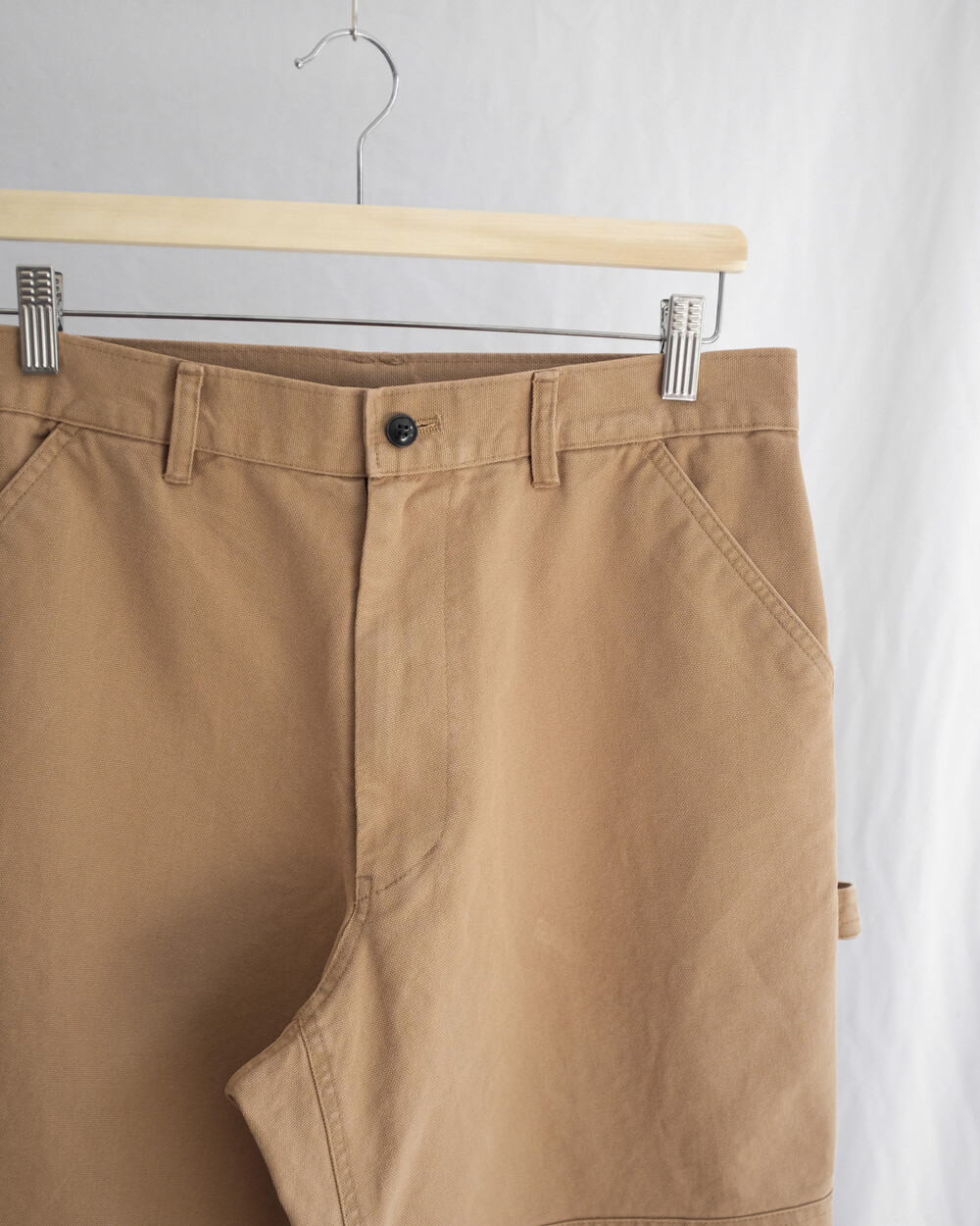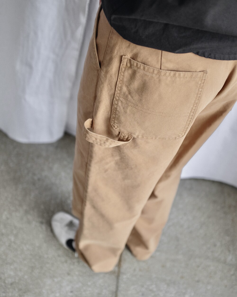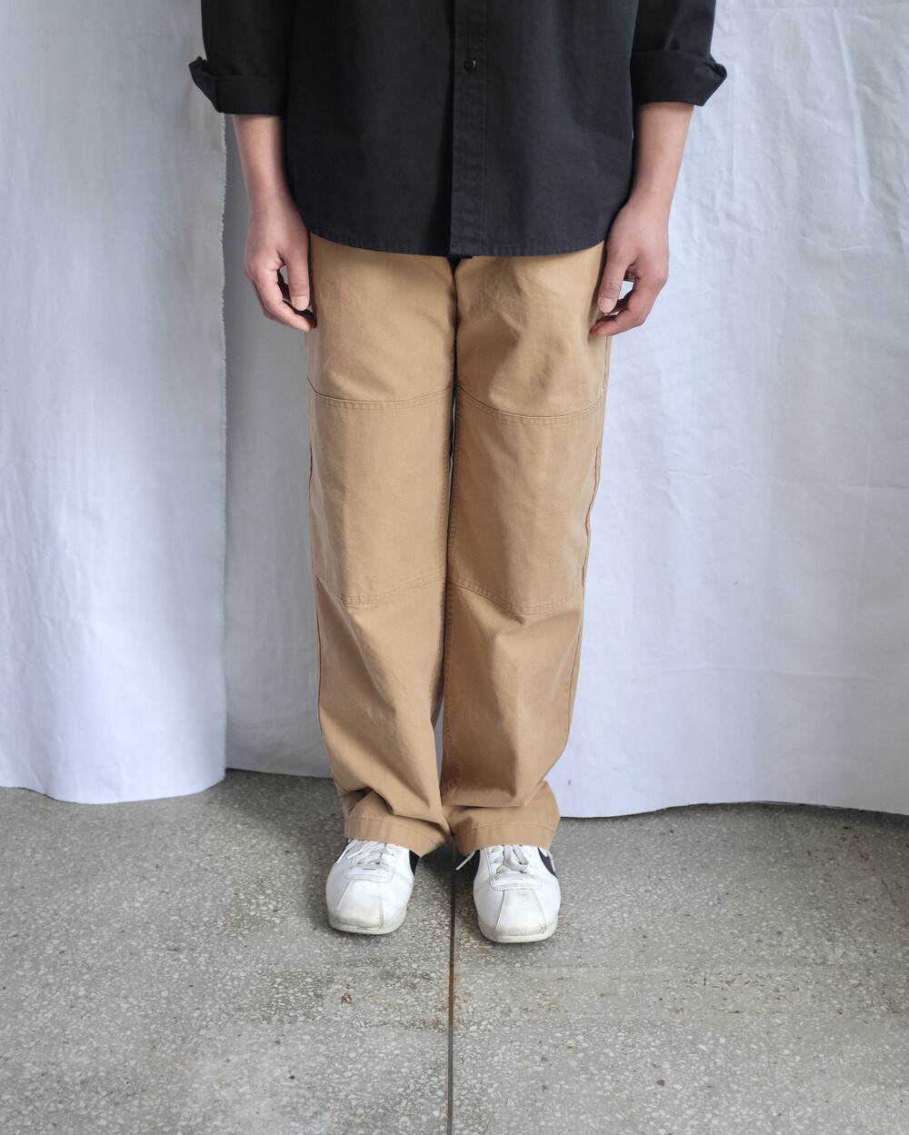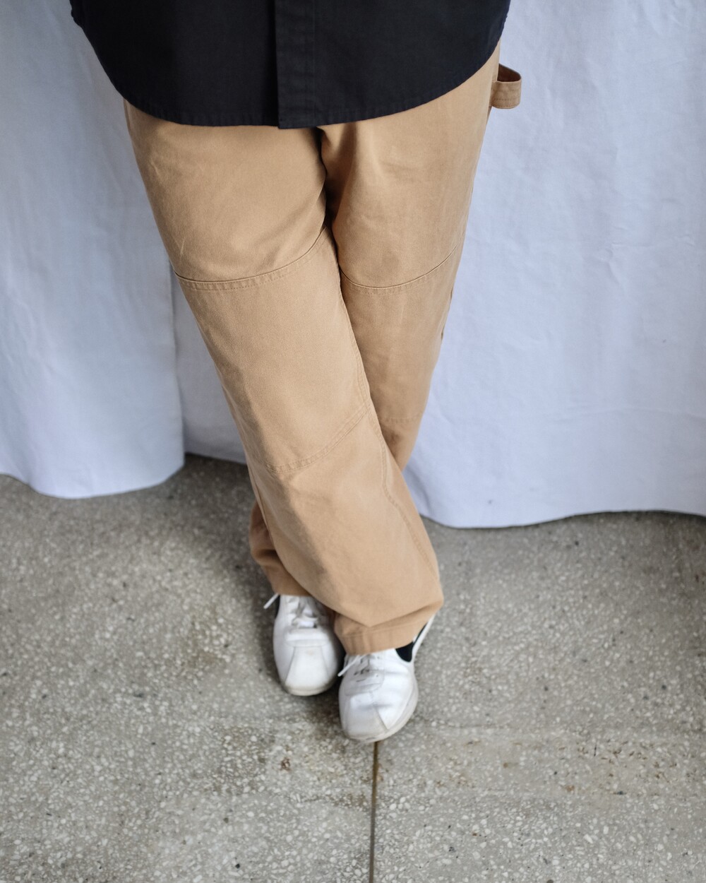 무릎 부위에는 원단이 한 겹 더 덧대어진 이중 원단(Double Knee) 처리로 보호력과 내구성을 높였으며 쉽게 찢어지지 않도록 평직으로 직조된 튼튼한 캔버스 소재를 사용하였습니다. 일상복으로도 누구나 부담 없이 착용할 수 있도록 불필요한 요소들은 생략하고 최소한의 디테일만 첨가하여 과하지 않은 디자인과 적당히 여유로운 실루엣으로 제작하였습니다. 완성 후 가공을 통한 소재 특유의 빈티지한 색감과 텍스처를 느끼실 수 있으며 경쾌한 베이지, 페이딩 된 블랙 두 가지 색상으로 만나보실 수 있습니다.