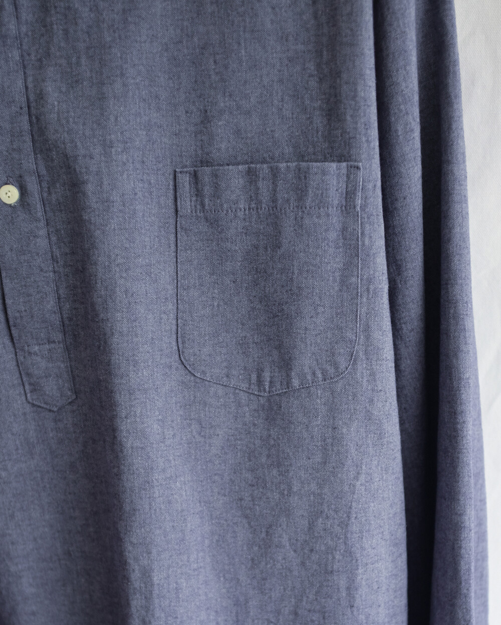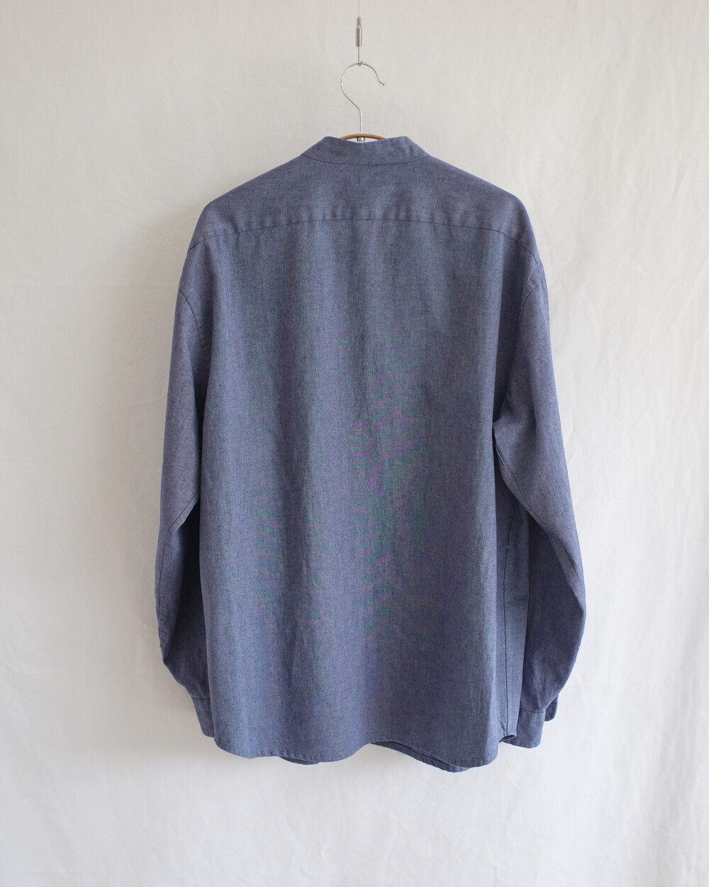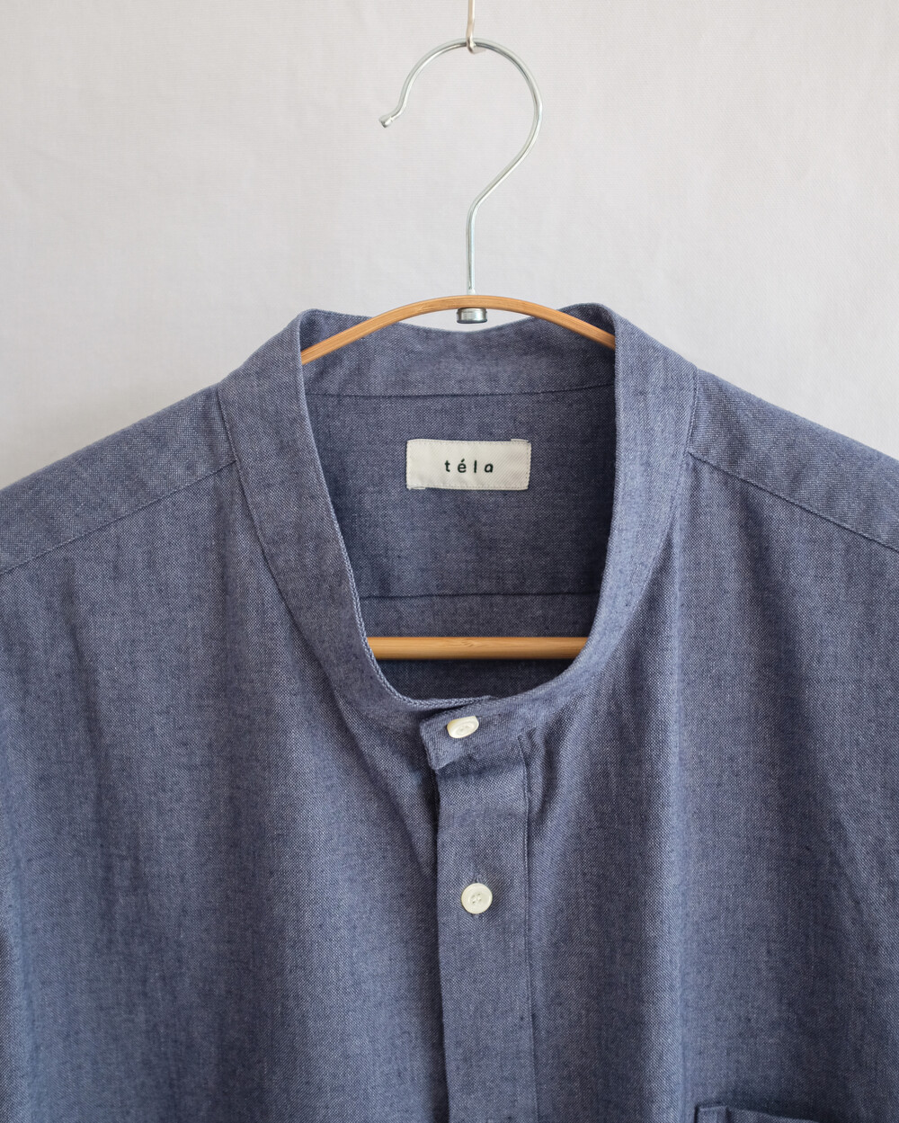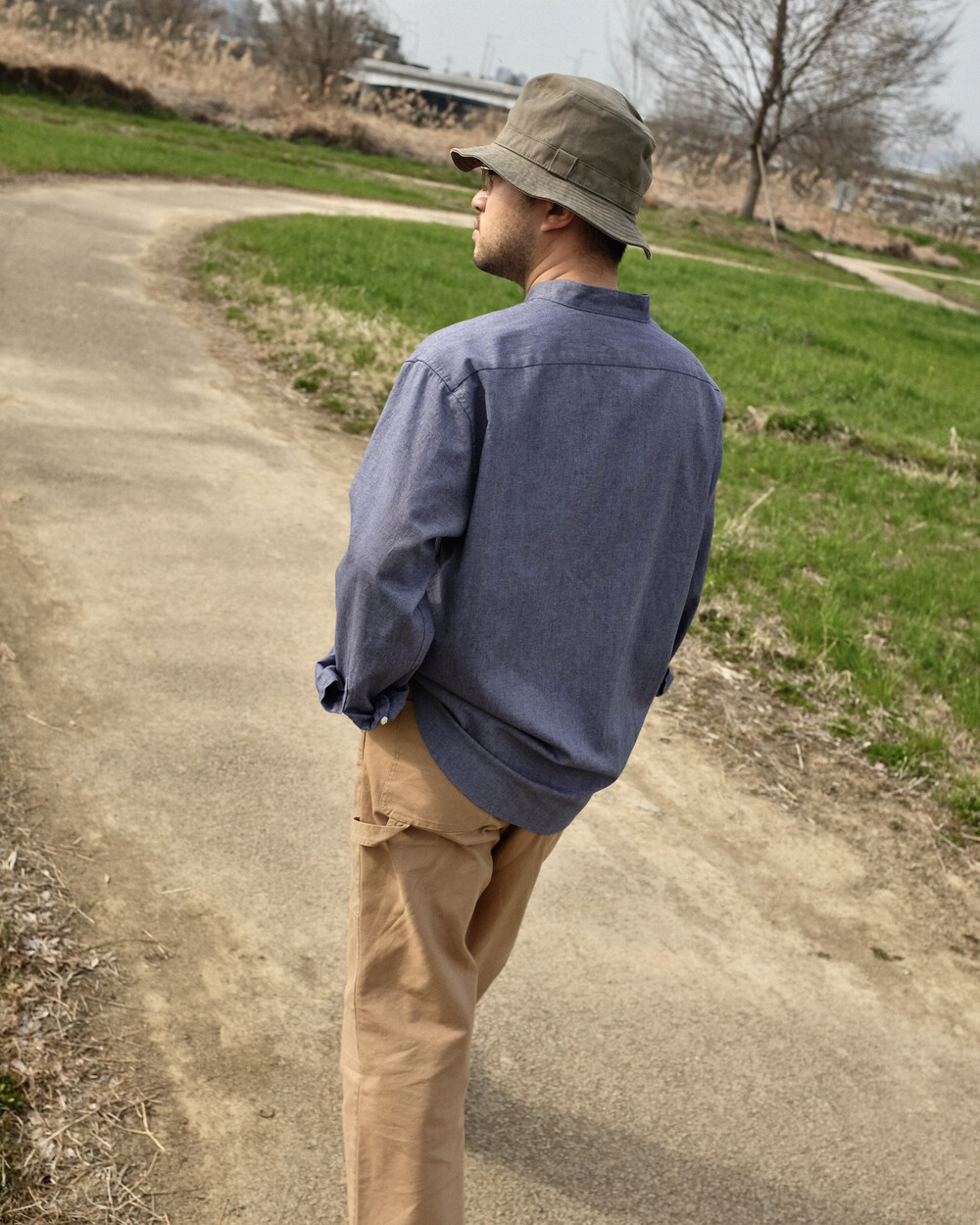 군더더기 없이 깔끔한 밴디드 카라 디자인의 ‘풀오버 셔츠(Pullover Shirt)’입니다.