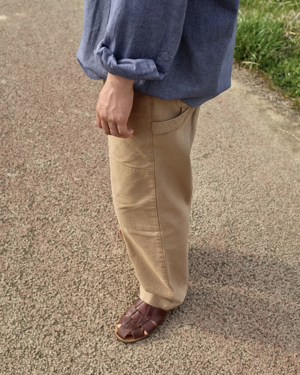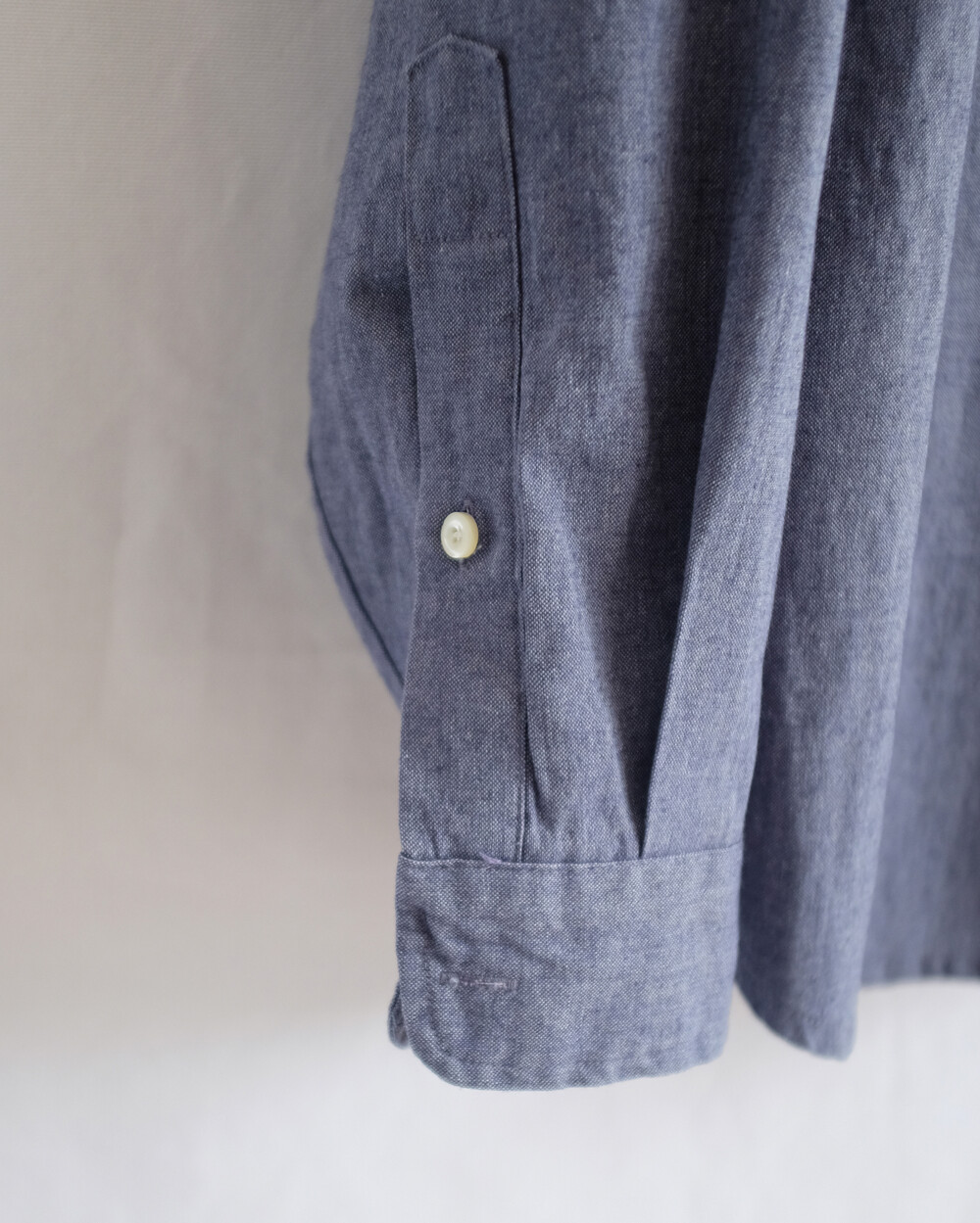 샴브레이를 연상시키는 조직감의 린넨, 코튼, 폴리에스테르, 레이온 혼방 원단으로 제작했으며 내구성을 갖추면서도 시원하고 쾌적한 착용감을 느끼실 수 있습니다. 구김이 적어 일상에서 부담 없이 착용하기 좋고 완성 후 워싱 공정을 더해 한층 부드럽고 유연한 텍스처를 살렸습니다. 재킷 안에 가볍게 이너로 매치하거나 날이 풀린다면 단품으로도 자연스럽게 착용하기 좋은 아이템입니다.